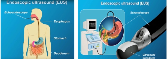 超声内镜(EUS)是一种结合消化内镜及超声波的医疗设备。它结合二者优点,内镜的头端是一个超声探头。接受一次超声内镜检查就像做胃镜一样,通过内镜把超声探头伸入进胃腔内,观察胃及胃临近的脏器。