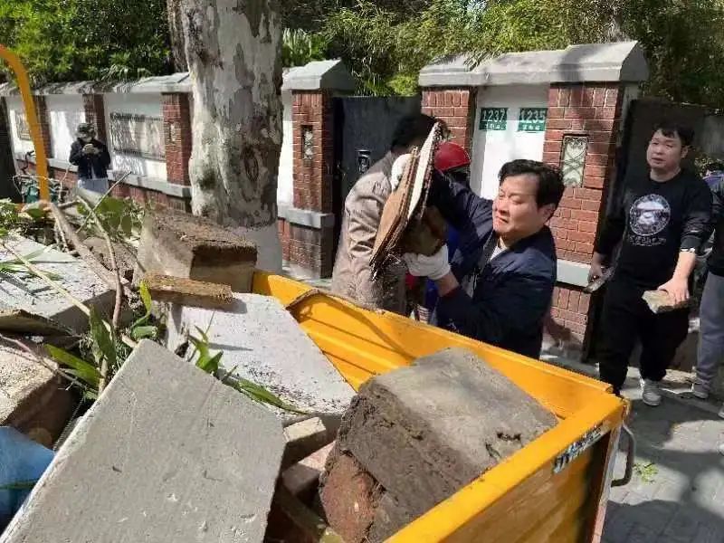 结合当前街道正在全力推进的“15分钟社区生活圈”建设工作,长春居委会近期也在为老洋房的未来“出谋划策”。在走访了解居民的诉求后,居委会立即启动对溧阳路1235号花园洋房庭院的整治专项行动。近日,居民区党总支联合川北物业和街道城建中心,以党建联建的形式开展整治行动,据统计,当天共清运废弃花盆等杂物两车。