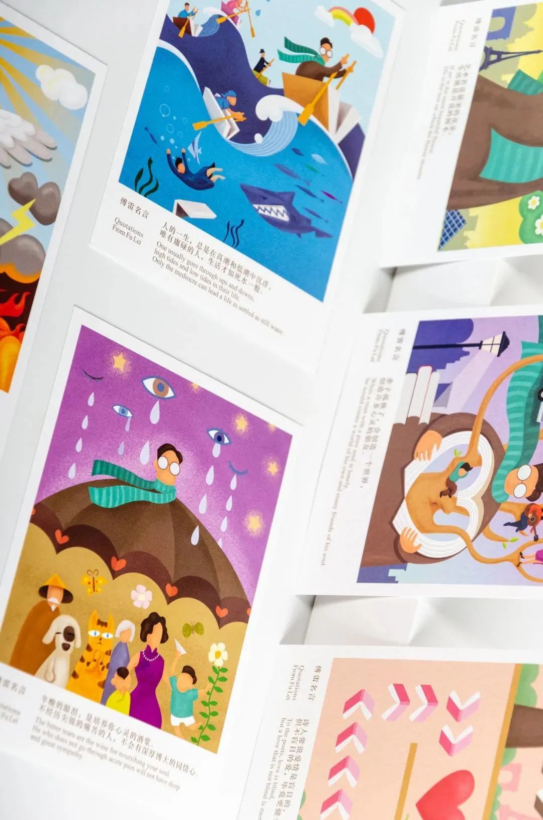 创新性地结合傅雷的文化形象,制作了笔记本、文件夹、书签、文具套组等一系列傅雷相关文创产品。以卡通形式挖掘传统傅雷形象之下更为温情的一面,让更多人换个角度认识这位伟大的作家,以艺术重构为历史赋予更为厚重的人文浪漫。