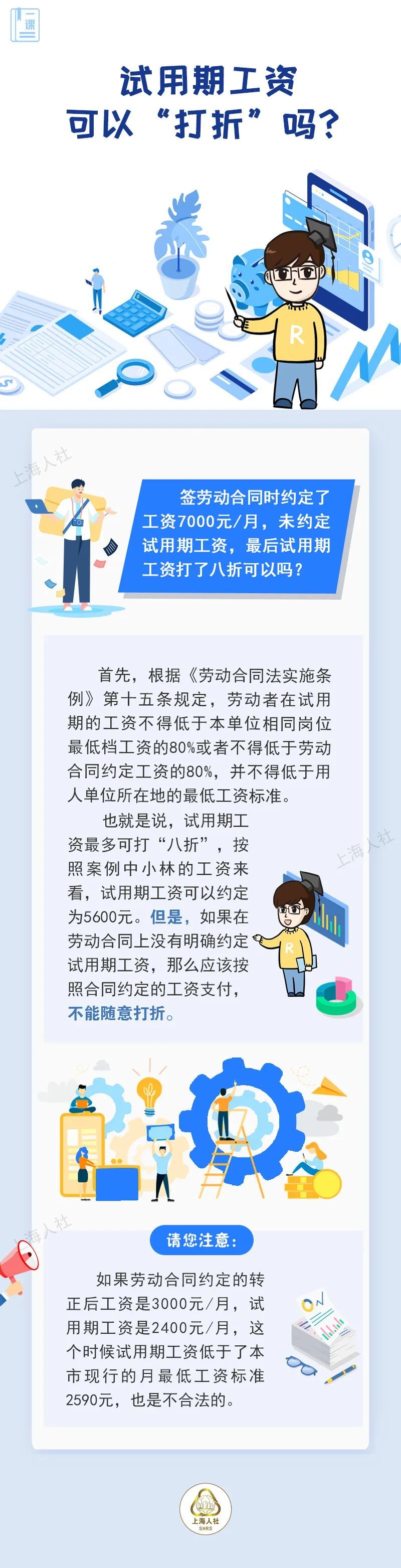 3月初,小林入职一家化妆品公司。签了三年的劳动合同,同时约定了工资7000元,试用期3个月。本月初,小林发现自己的到账的工资不是约定的7000元,而是5600元。问了HR,对方回复说,试用期期间,工资打八折。可是合同上明明没有写啊……这也可以吗?试用期工资可以“打折”吗?