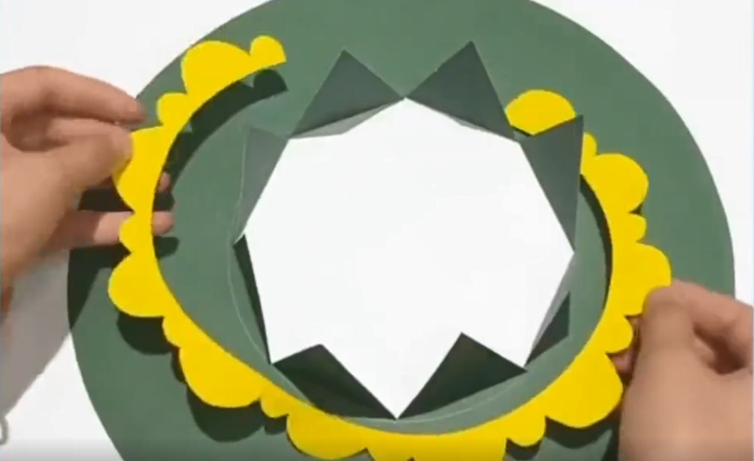 用另一个颜色的卡纸,剪出花边,并用胶水黏贴。