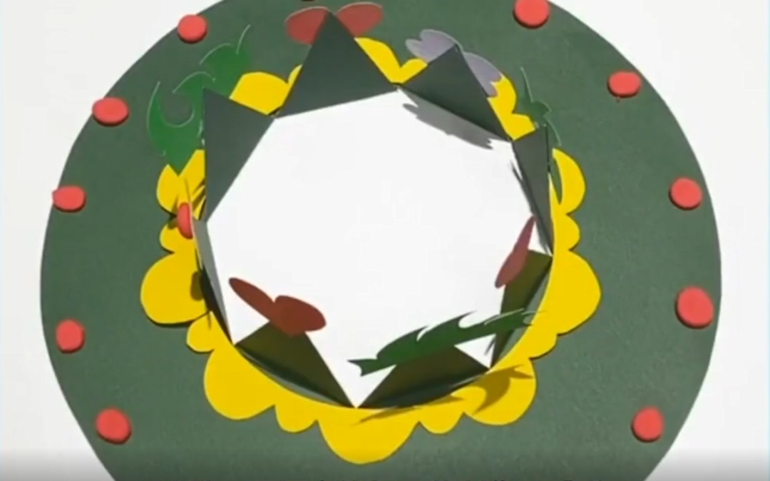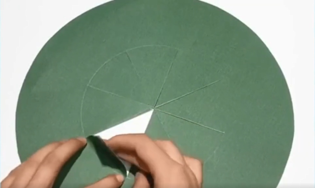 在圆形卡纸上用圆规画出一个同心圆,并用米字型等分成八份。