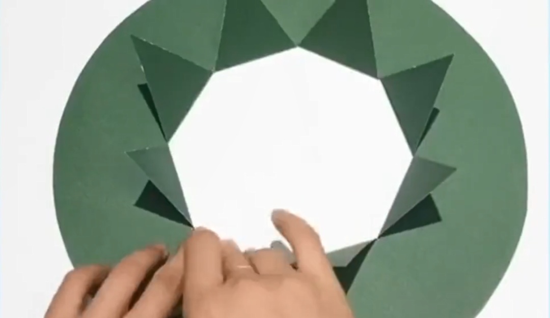 用美工刀沿米字型划开,将尖角向外翻折。
