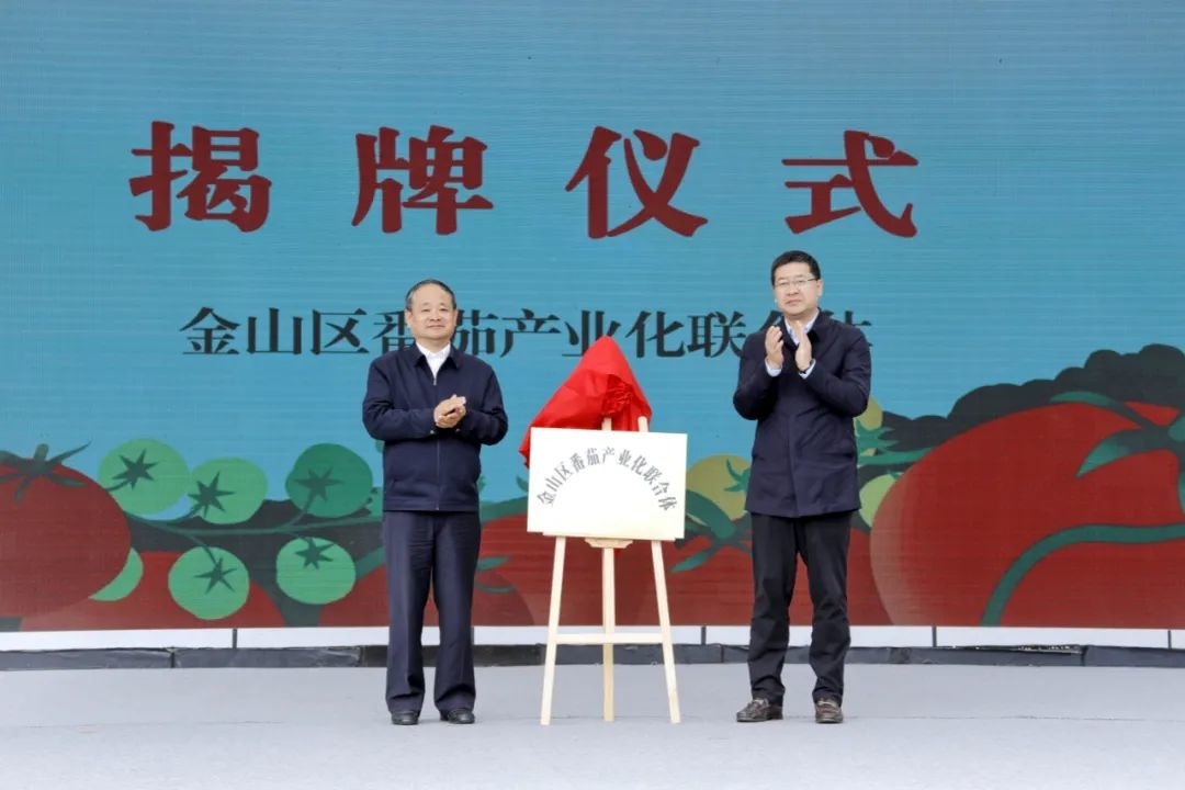 区委副书记袁罡为金山区番茄产业化联合体揭牌并讲话。现场还为金山区番茄品鉴评优金、银、铜奖,最受市民欢迎奖以及最佳组织奖进行颁奖。
