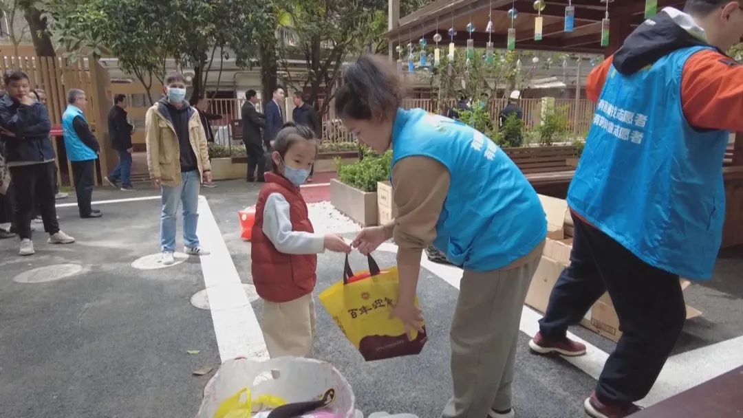 居民王女士带着自家的两个孩子一起来参加活动,她让大女儿自己整理了闲置的绘本和玩具,希望通过参加活动,让孩子可以从小就树立环保的意识。“带了一些孩子不看的小书籍,一些画板玩具,现在已经不玩了,给她换一些新的东西,通过这个活动,让她从小建立一种环保的意识,保护环境。”