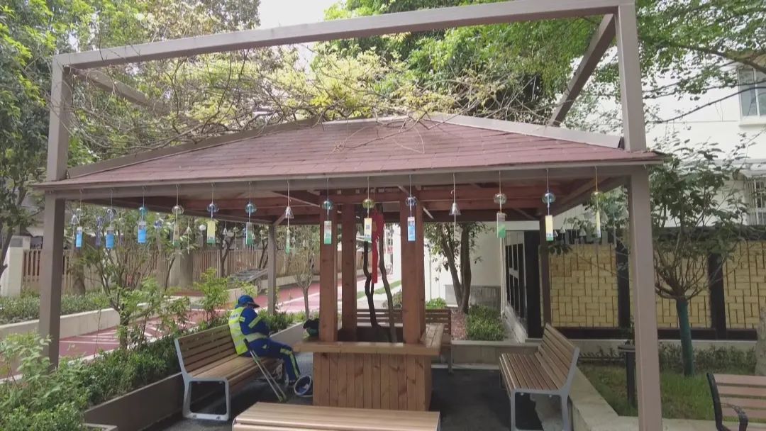 居民谢阿婆每天都会和老伙伴们在紫藤亭里聊天晒太阳,谢阿婆说,现在的生活真的感觉很幸福,小区环境优美,各种硬件都很好,管理也十分人性化,比如小区的智能垃圾箱房现在24小时对居民开放。“改造好以后很开心的,很干净的美丽家园,真的美丽。我们以前小区是很旧的,现在是很好很好的,倒垃圾本来有时间,早上七点到九点,晚上六点到八点,现在随时可以倒。老人健身的东西也都装好了,各方面都很好的。”