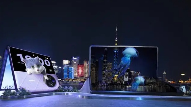 近日,vivo 携手数字内容平台 OUTPUT 在北外滩国客中心建起vivo X Fold2 & vivo X Flip两款巨型手机模型,搭载丰富数字内容,打造新型数字城市景观,有趣的双屏联动吸引了市民们的目光。