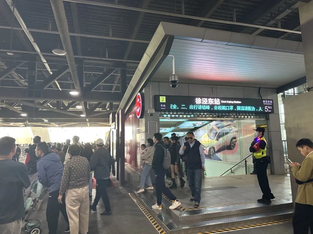同时针对车展周末大客流离场,警方与轨交部门协商,轨道交通提供2.5分钟一列的运能保障,并且从国展中心离场进站的客流实施免安检措施。同时,2号线徐泾东站4号、5号出入口采取只进站不出站的管控措施,当遇到4号、5号出入口无法承载和消化进站大客流时,会将客流通过西厅8米层平台引导至诸光路天桥分流至外场公共交通。此外,主办方在P8停车场增设了散场巴士和出租车服务,为观众离场提供公共交通的补充。