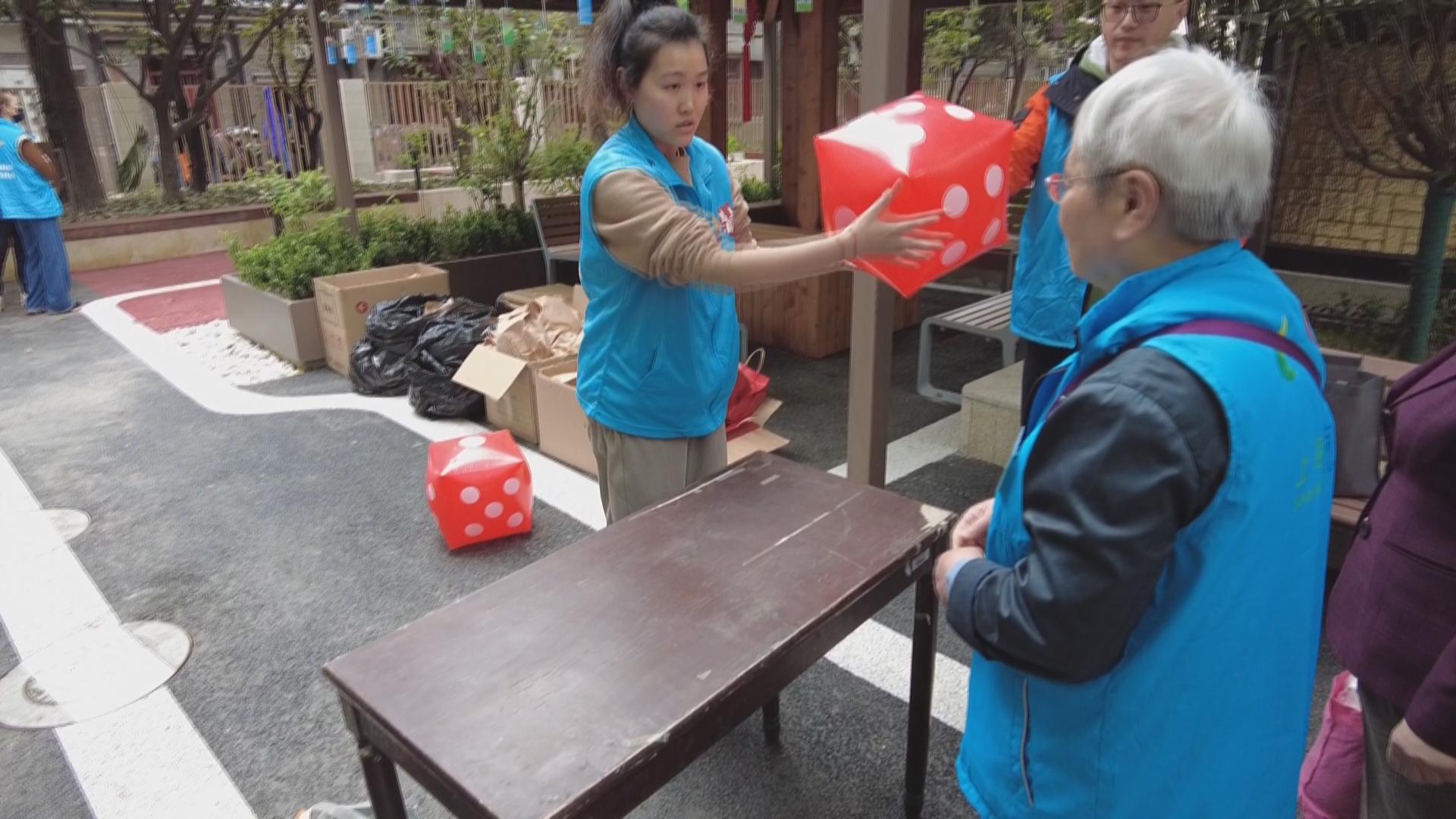 在改造一新的小区内,居民、学生分散在各个角落参与活动,在“如意廊亭”紫藤亭下,环保趣市集热闹非凡,居民们排着长队,大家将自己家中一些闲置物品打包,“以物换物”,获得一次投掷充气筛子的机会,根据点数抽取相应号码的盲盒,作为捐献闲置物品的小礼物。 居民告诉记者:“我带了帽子和小朋友玩的东西。现在不用了,放在家里也没用,捐献出去也挺好,献一份爱心。”