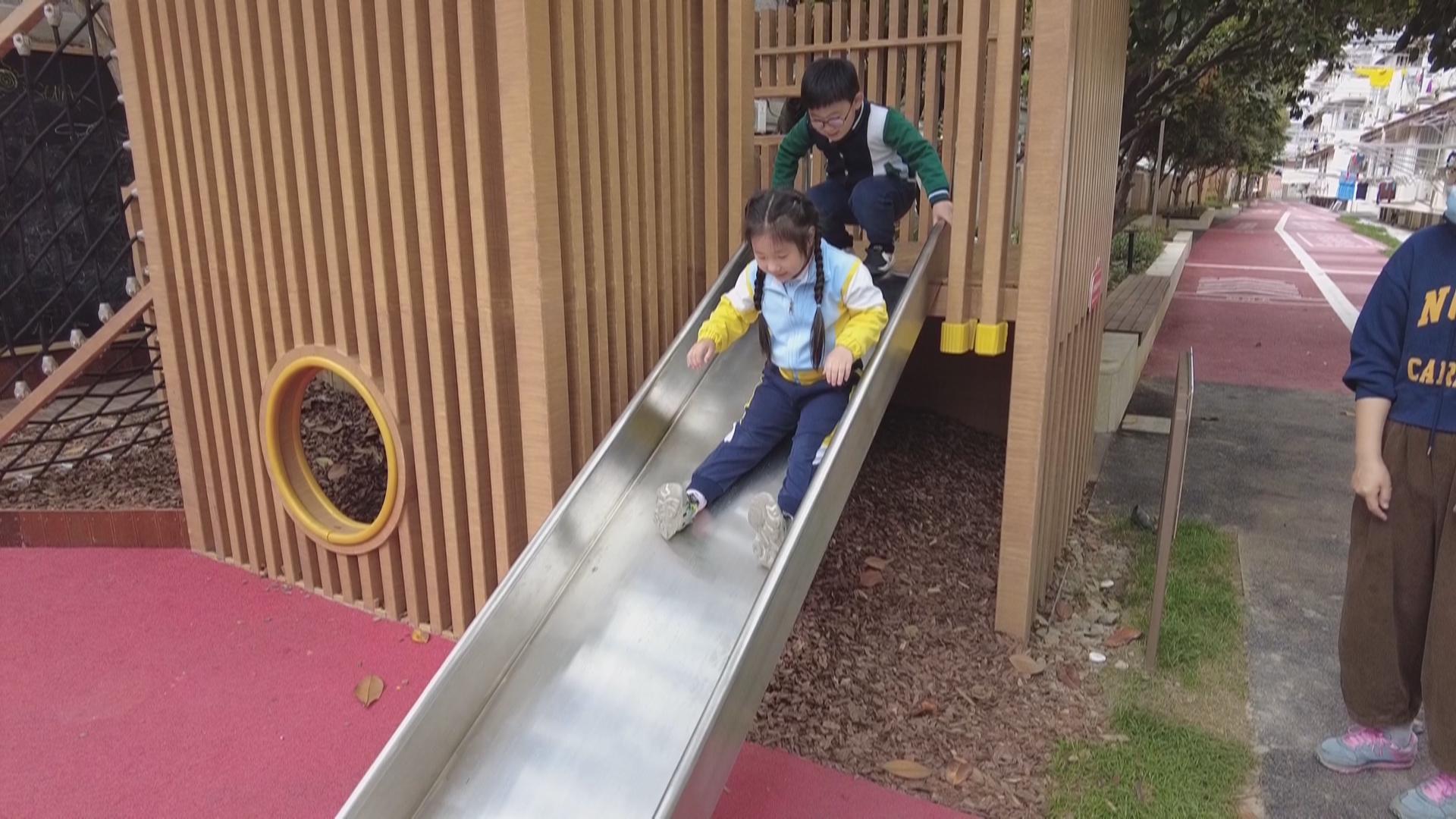 不光是老年人下楼的意愿增强了,孩子们的身影也活跃在小区的各个角落。这次改造,专门为孩子们打造了多个活动空间,有可以玩水的“雨水花园”,只需要动动小手,就可以有地下水上升,顺着管道流下,浇花灌木,循环利用。还有可以滑滑梯、跳房子、在黑板上画画的小型儿童乐园,现在每天傍晚的时候,小区里的孩子们都会活跃在各个角落里,玩得不亦乐乎。