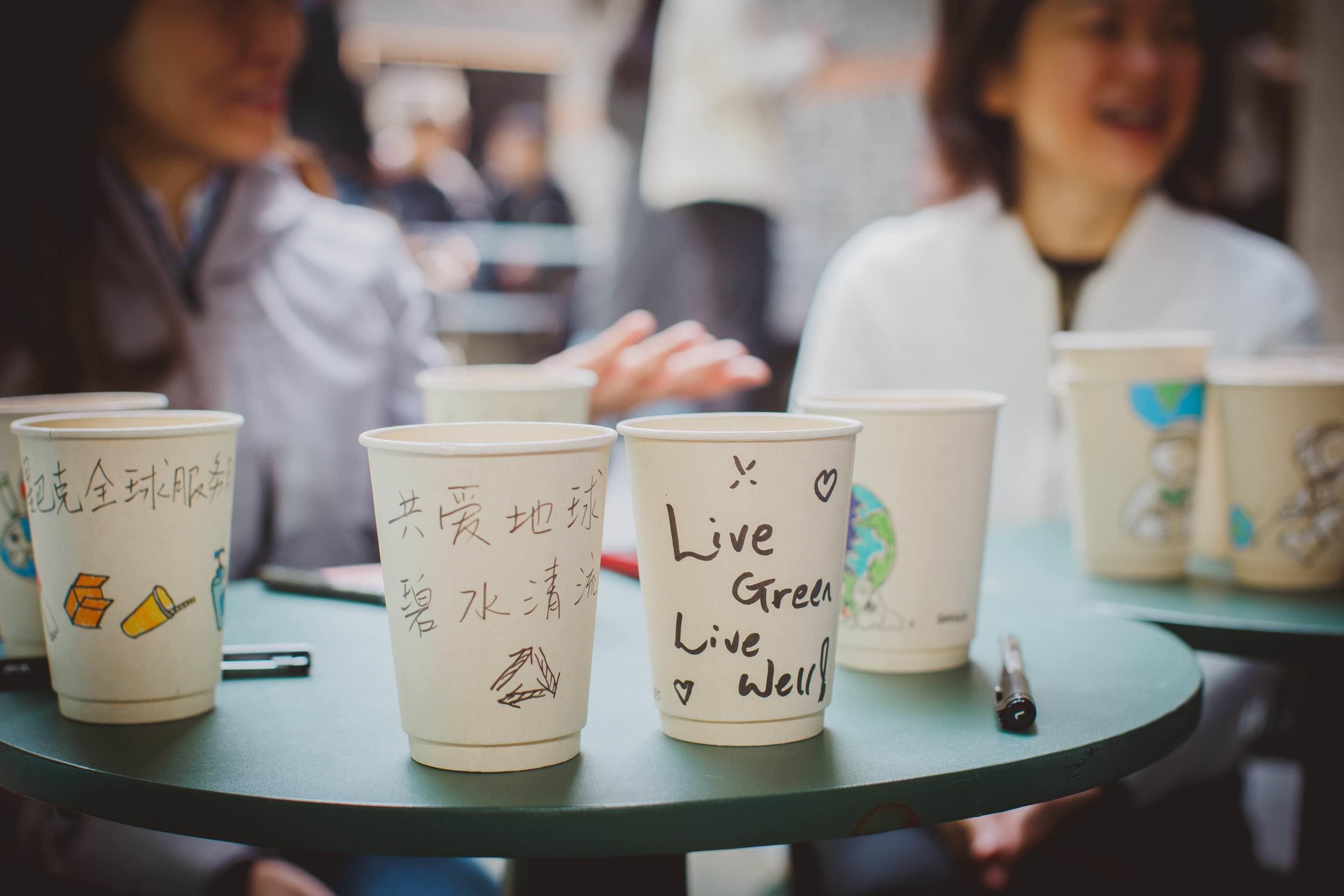 当环境污染问题已成为世界性的难题,越来越多的艺术家通过不同媒介创作,呼吁人们重视生态环境保护,减少资源能源消耗。活动现场,一批来自云南利用甘蔗废渣制造的可降解咖啡杯,在视觉艺术家施政和他女儿施歌的妙笔绘就下,被赋予了别具一格的艺术魅力。