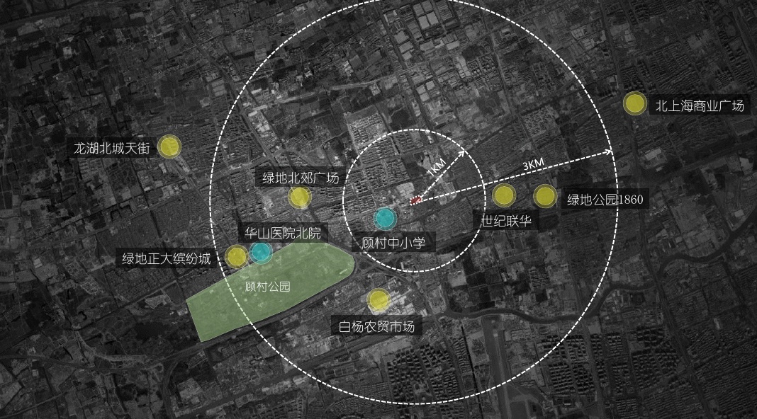 项目总共涵盖11所学校、2所体育馆、8万方滨河公园和2公里漫步跑道,有“顾村新天地”、“特色商业中心”、医疗和养老地块等规划。紧邻上海最大郊野公园顾村公园,三级甲等医院华山医院北院,教育王牌世外、华二和公办区重点顾村实验等学校。周围交通四通八达,有公交宝山1路、宝山3路、宝山29路等,地铁1号线、7号线、15号线三轨交环绕运行。
