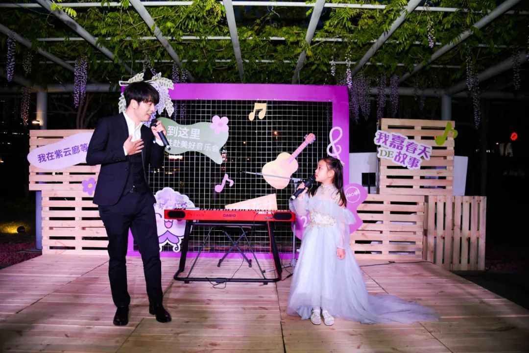 夜幕降临,紫云廊下依旧人头攒动。紫藤花香交织着美妙的旋律,一场户外快闪音乐会用多种演出形式讲述我“嘉”春天的故事。男女声独唱、亲子对唱、吉他弹唱等表演吸引了不少路人驻足欣赏。“晚上到这里散步还能听到这么动听的音乐会,好惬意!”市民杨先生表示。