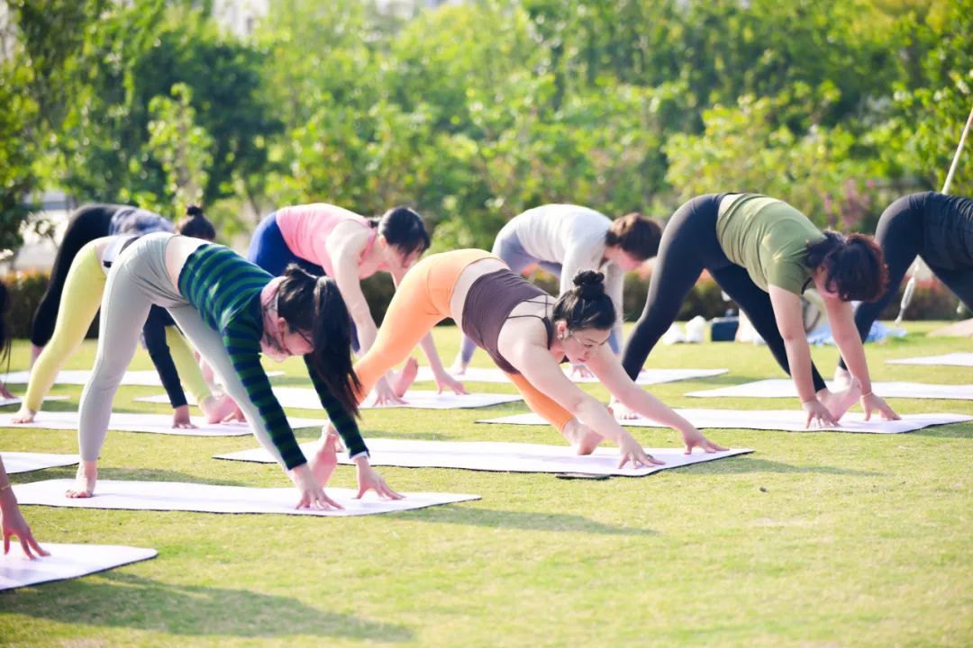 “左手撑地,双腿并拢,右手向上延伸,呼吸5次后换一边……”在瑜伽老师的指导下,大家尽情伸展肢体,享受城市生活中难得的静谧时光。“一大早来锻炼、赏紫藤,既能感受自然,又能放松自我,感觉很畅快。”市民李女士表示。