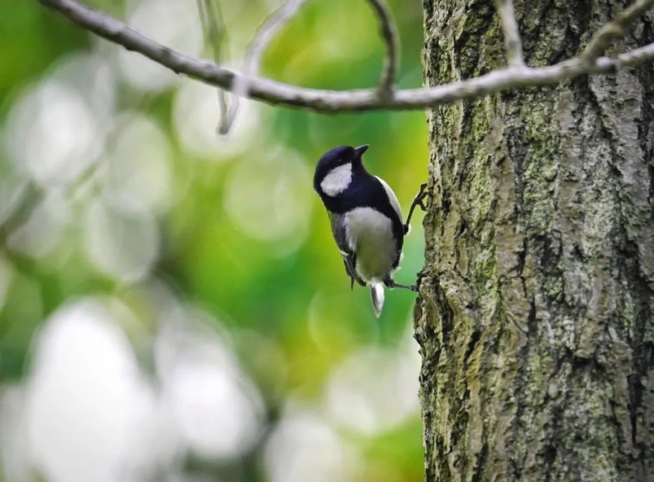 远东山雀身上虽然比较缺少黄色色调,但是黄绿色的上背部也是显著的特征,让人难以忽视。