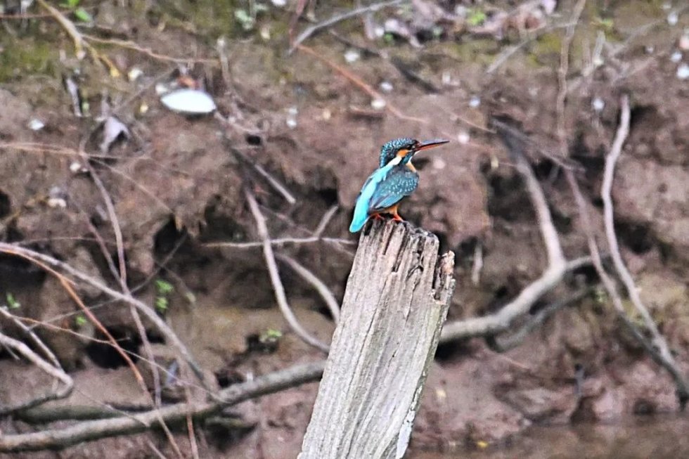 这是最常见的一种翠鸟,体型较小,上体蓝绿色,中央有一条蓝带,下体橙棕色。