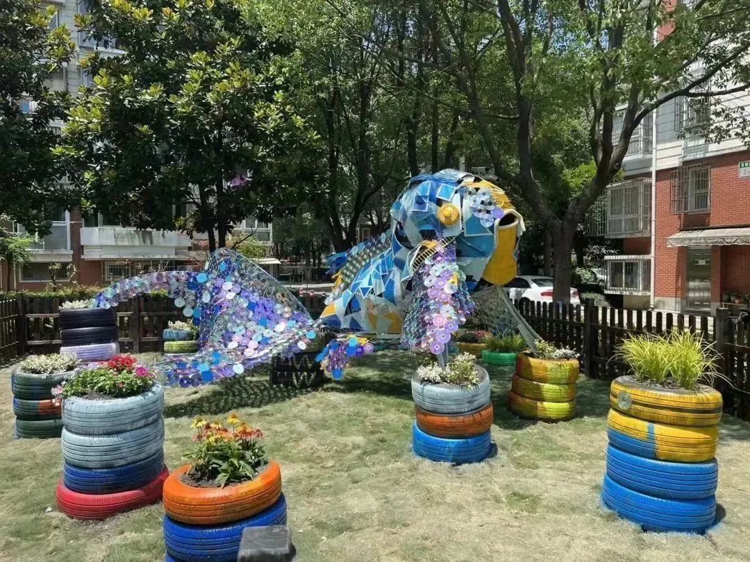奉浦街道乐康苑小区的中心位置有一个“星星花园”,花园的主体是条充满活力的鱼,名为“水之灵”,这是居民通过利用家中废旧物品,围绕环保主题,设计、制作而成的社区花园微景观,凝聚着无限的自治力量。如今的“星星花园”又是一番怎样的景象呢?