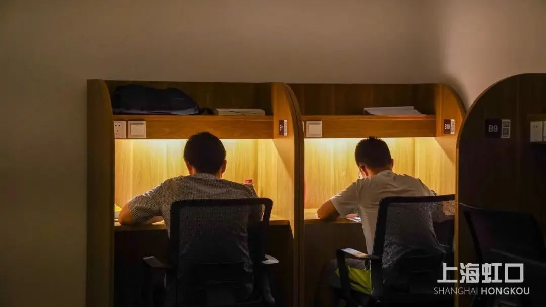 位于四平路上的“时不我待自习馆”是上海第一家共享自习室,在备考旺季,这里几乎一座难求,需要提前多天预约才能订上心仪的座位。