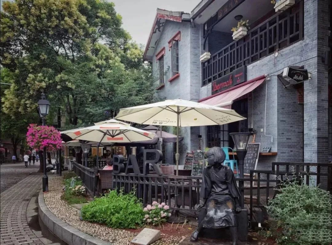餐厅正对着多伦路上的夕阳钟楼,门口立着丁玲的雕塑,在充满文化气息的多伦路文化名人街里,在巨大的落地玻璃窗前,静静地享受美食与阅读带来的愉悦。