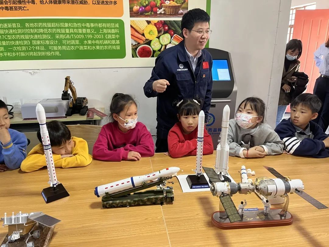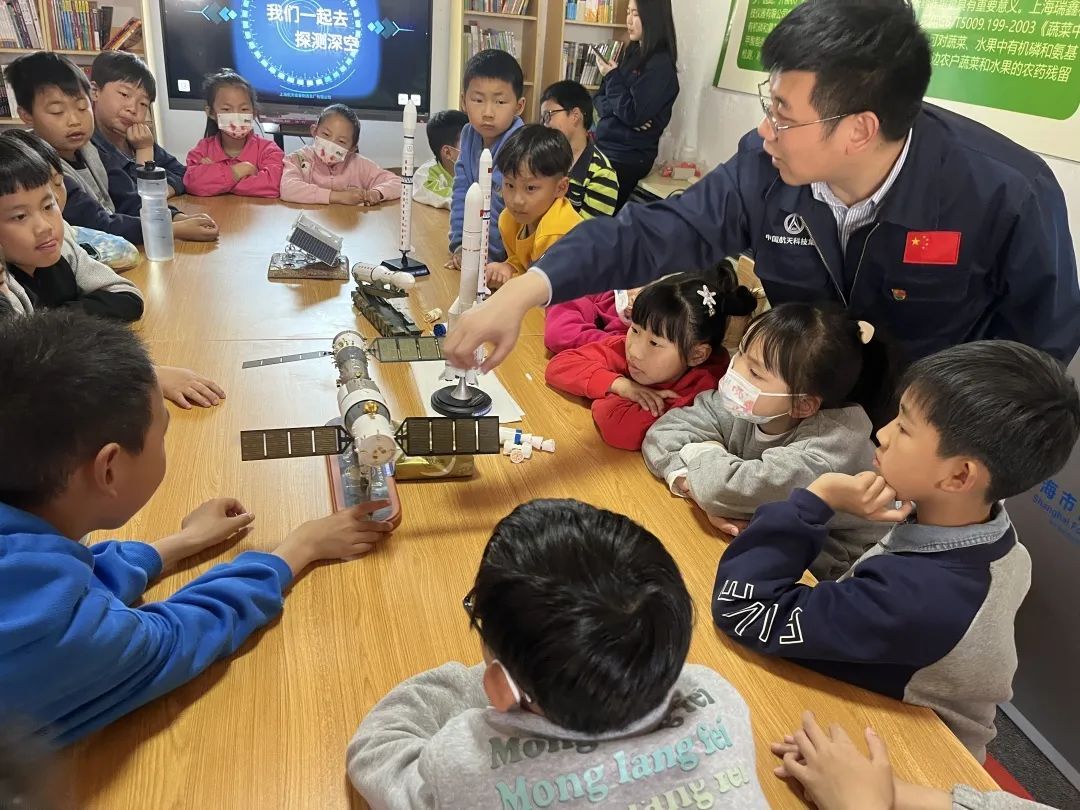 随后,上海航天设备制造总厂有限公司团支部副书记刘子扬通过实物模型为小朋友们详细介绍了运载火箭、载人飞船、月球车的结构、功能,让孩子们对太空作业有了更加全面的了解。