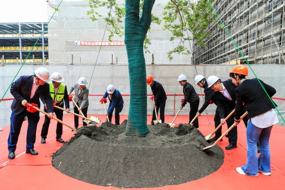 仪式结束后,出席领导和嘉宾来到临近原陈毅市长办公室的项目庭院空间内植树培土,共同栽下了作为项目景观营造的首棵标志性大树——紫薇树。