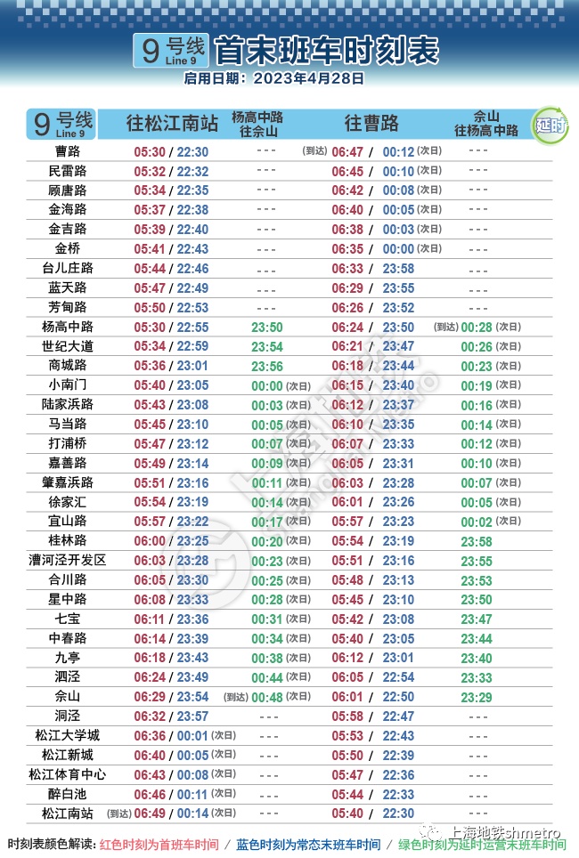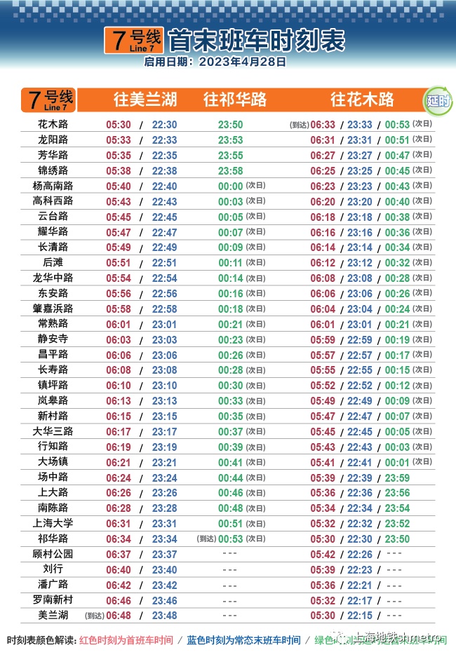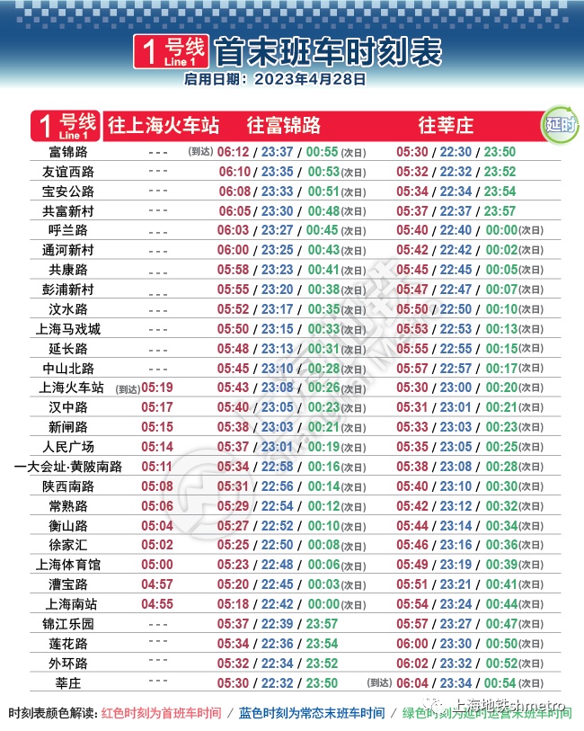 根据计划,2023年4月28日起,上海地铁1、7、8、9、10、13号线实施周五、周六延时运营。在延长运营时段内,上述线路均在原常态末班车后开行载客列车,并在开行区段内站站停靠。延时期间,各换乘站实施自然换乘,请需要换乘的乘客注意换乘相关线路的末班车时间。另外,地铁2号线由于线路夜间施工较多,设施设备维护保养的时间资源较为紧张,暂不具备延时运营条件。