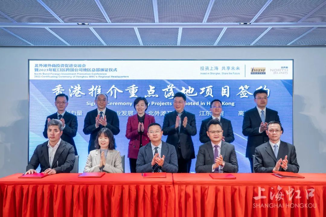 4月24日下午,在“投资上海 共享未来”北外滩外商投资促进交流会暨2023年虹口区跨国公司地区总部颁证仪式上,首批4个香港重点项目与北外滩集团进行签约。本年度第三场“月月签”活动同步进行,16家企业进行了重点项目签约。