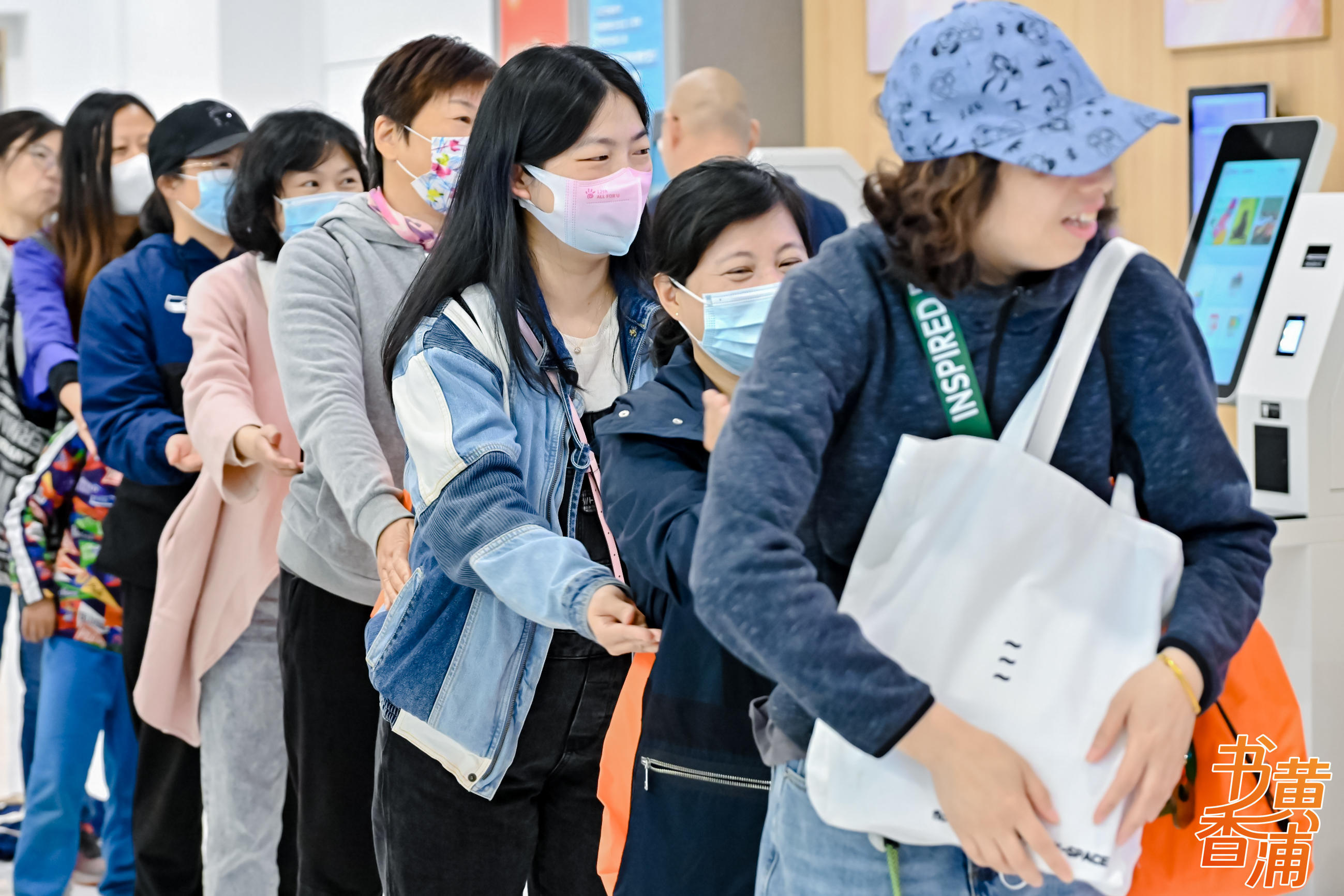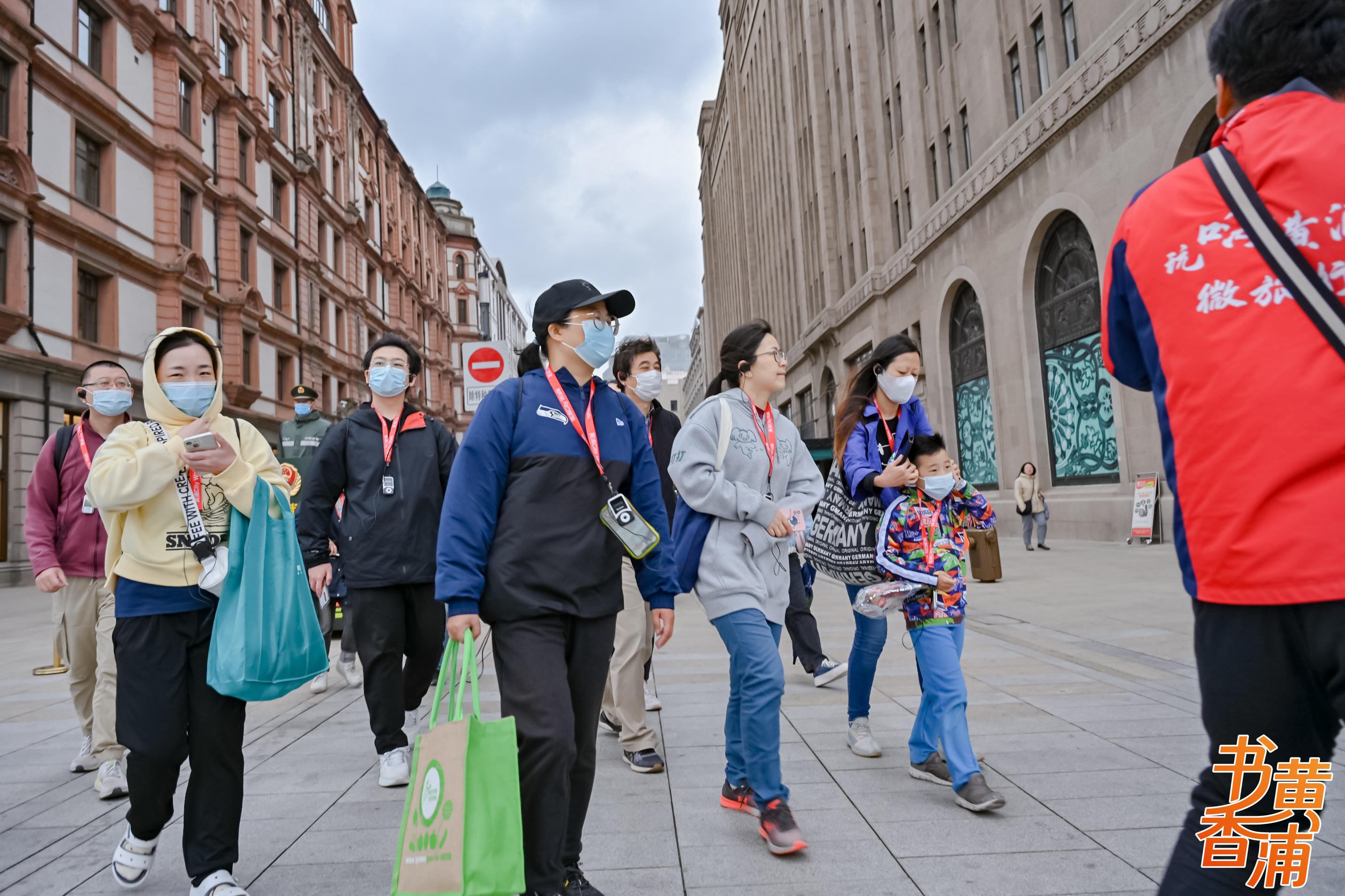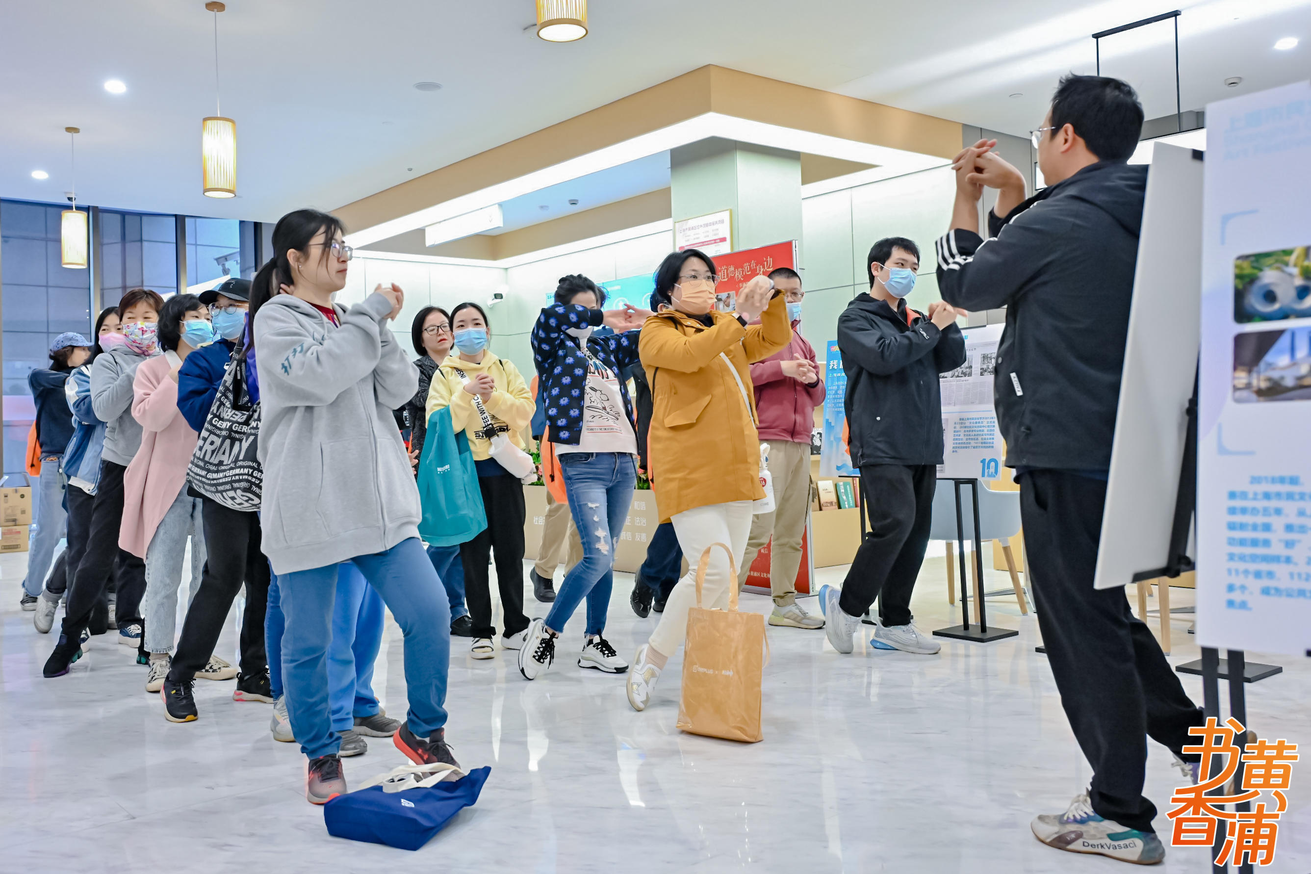 在黄浦区图书馆做完热身运动后,市民们组队出发,气势如虹。