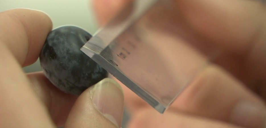 在上海前卫柑桔有限公司,记者看到,星空蓝莓呈深紫蓝色,表皮没有任何褶皱,颗粒饱满,外皮上的一层“果霜”花青素满满,肉眼可见的要比普通蓝莓大上一圈,果径在18毫米,个别大的果径达到了20毫米,而普通蓝莓的果径只有12-15毫米。