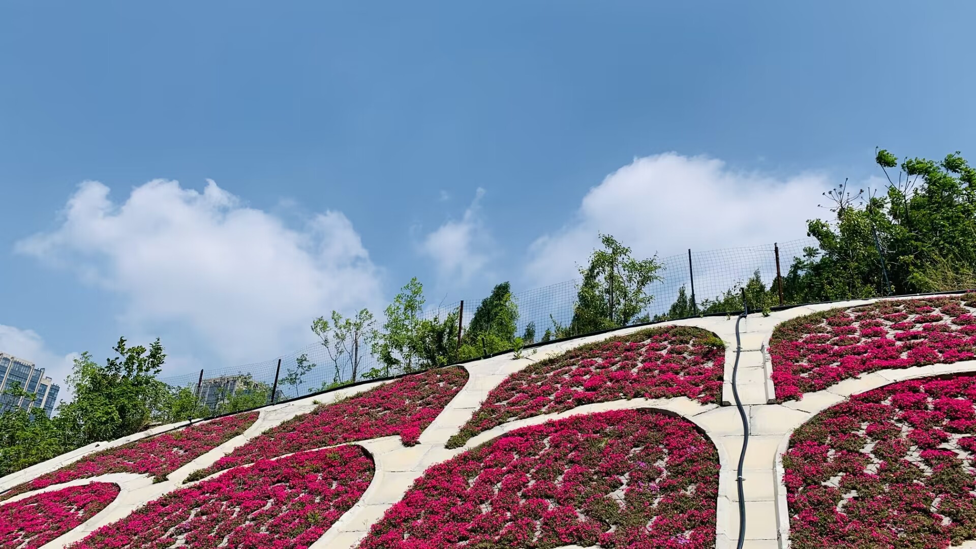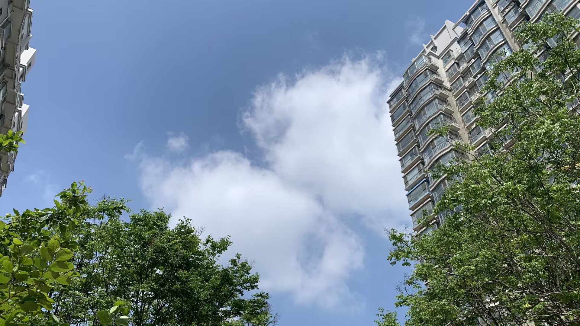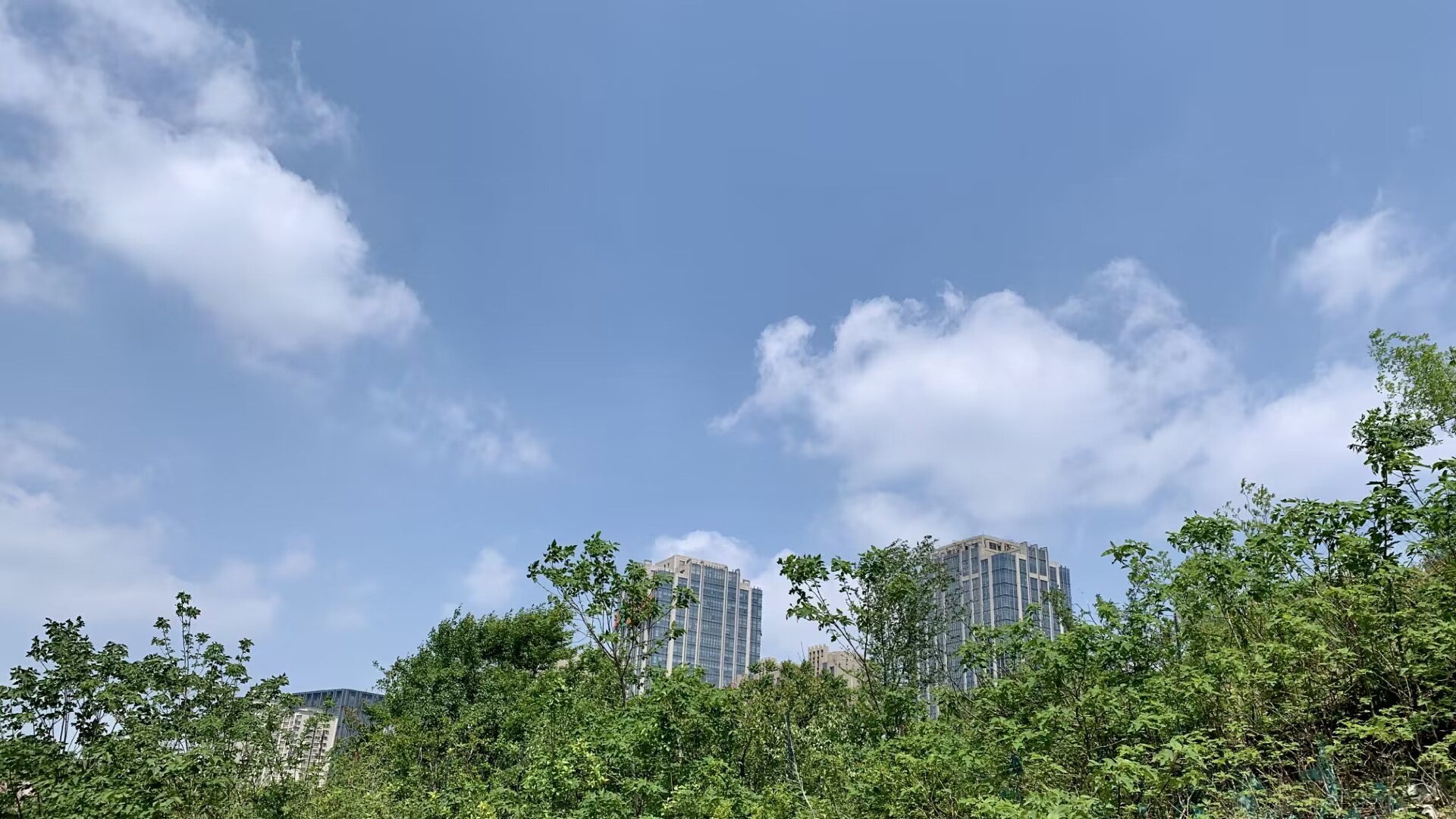 4月25日,雨后天晴,济南城上空阳光明媚,白云悠悠,天上白云映着地上绿树红花,成为动人春日美景。(大众日报客户端记者 武宗义 报道)