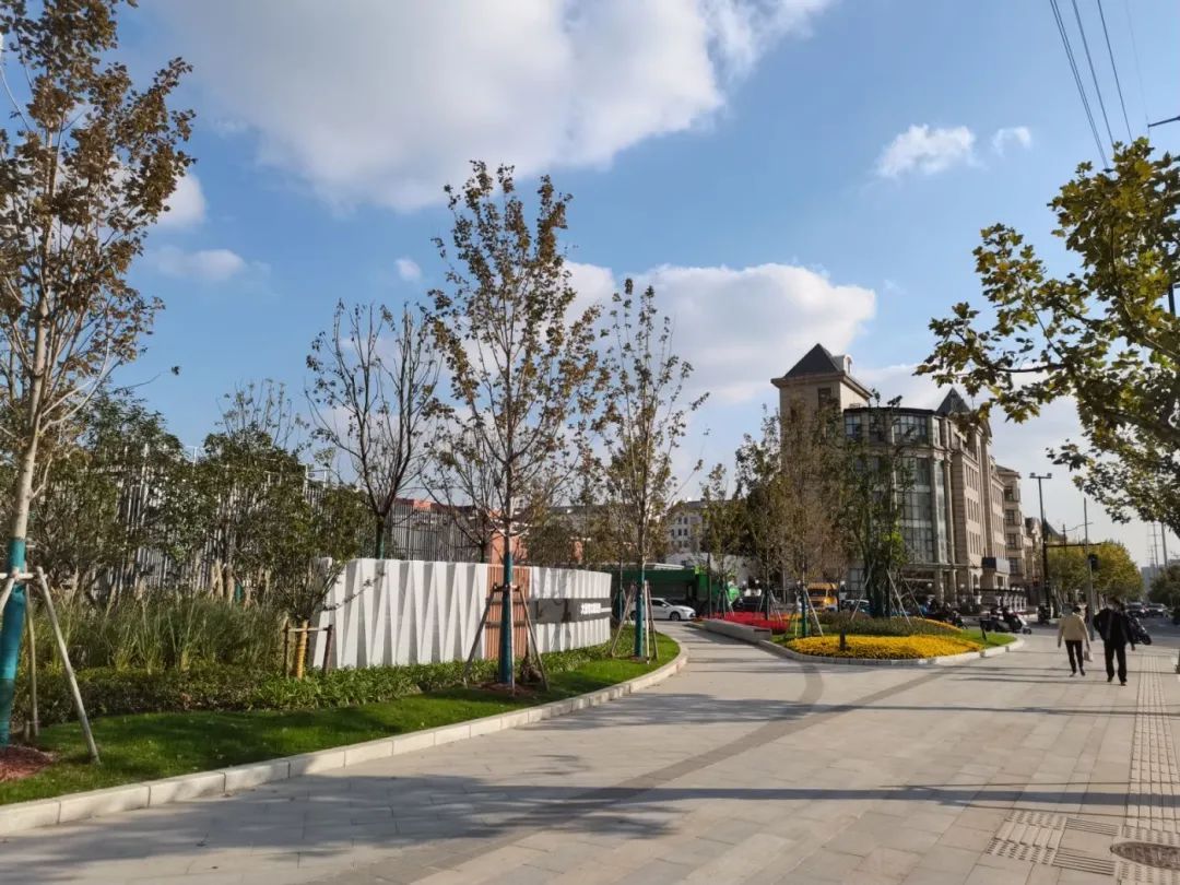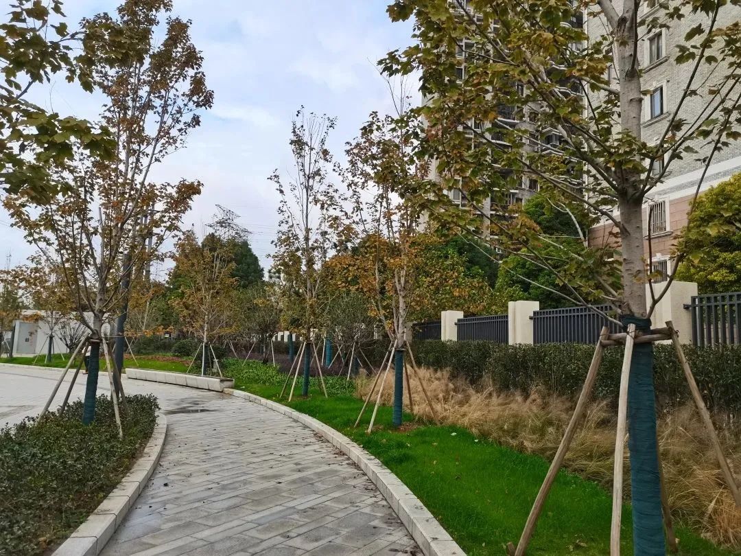 每当秋意款款袭来,红花槭披上了金色的礼服,整座园子在香樟等背景植物的衬托下,仿佛一曲红花槭协奏曲,凸显了大渡河路景观道路“音韵悦动”整体设计风格。