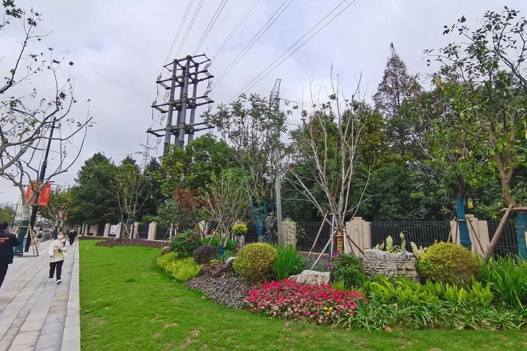 超高压架空线着实给口袋公园的植物配置带来了限制,但换个角度看,仿佛空中的五线谱,增加了整座园子的律动感。