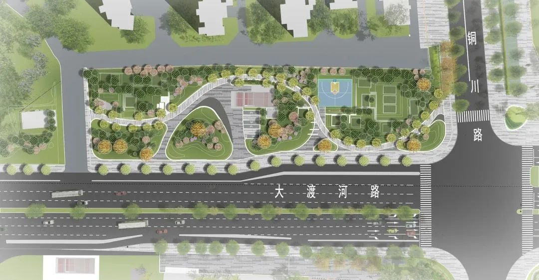 大渡河路铜川路东北角绿地,因配合轨交14号线建设实施动迁,历经数载春秋终于洗去泥渣,随着大渡河路景观道路整体改建的步伐,绿地在原址上焕发出新的活力。作为大渡河路沿线北起首座开放式公共绿地,此次改建面积达6500㎡,南起铜川路,北临真如公园围墙,命名为“大渡河路口袋公园”。