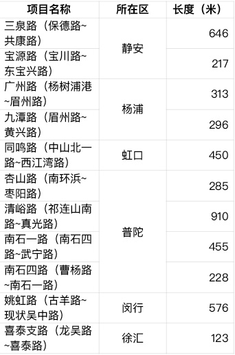 上海市河湖滨水空间开放成果汇总表(不含一江一河)