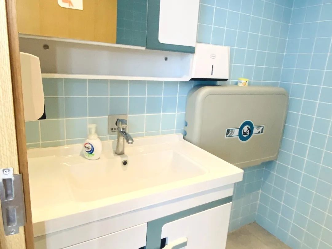 除了各具特色的空间布局,在普陀区各个片区都设有母婴室和儿童友好的洗手间。每一处都是按照孩子的尺寸和需求来设计,环境温度适宜,墙面装饰氛围温馨,配备了婴儿床、软躺椅、尿布台、家属座椅等设施,并设置了遮蔽的滑帘,保护妈妈们的隐私,满足婴童玩耍、休息、就餐等各种需求的同时,为妈妈们提供一个安全、轻松的环境。