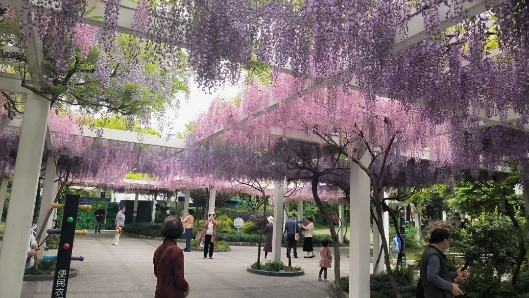 诗画世界落入现实世界,具有浪漫主义的统一性和多样性,文学中的紫藤是《紫藤萝瀑布》中感悟生命短暂振作后奋发的精神意像,而现实里它是盛装出席春光的那一抹迷人的蓝紫色,伫立而远望,花冠像林中飞舞的蝴蝶,枝蔓如蜿蜒盘绕的巨龙,非常值得去公园踏青游赏。
