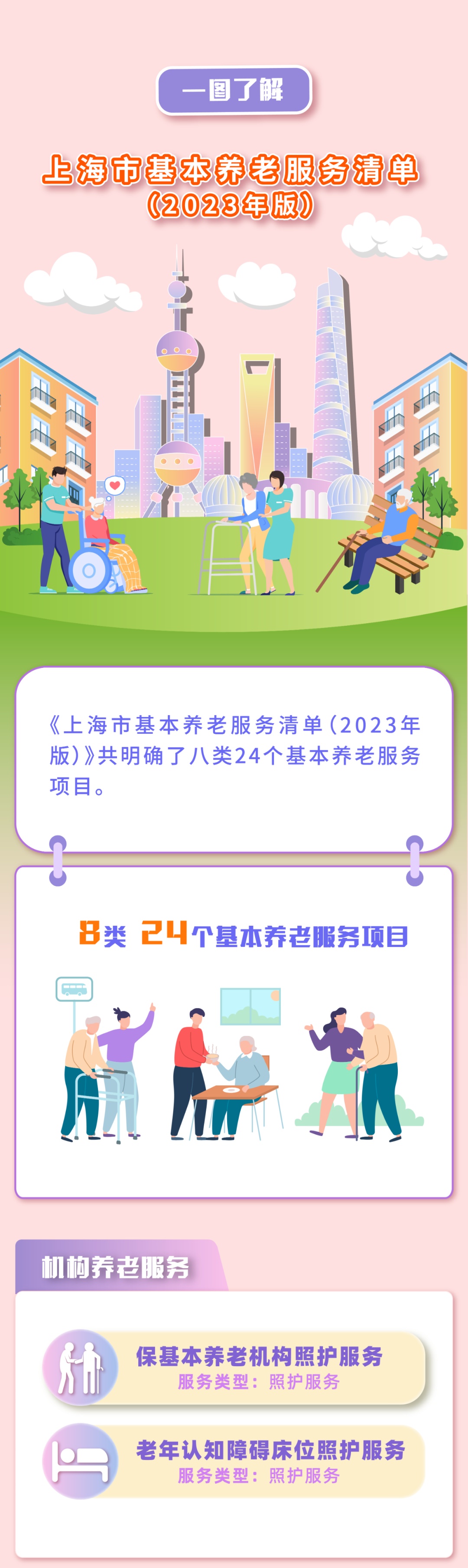 为保障老年人享有基本养老服务,按照相关法规政策规定,近日,经市政府同意,市民政局等11个部门联合印发了《上海市基本养老服务清单(2023年版)》,明确了8类24个项目的服务对象、服务内容、服务标准、牵头责任单位及支出责任等。未来,市民政局还将会同有关部门根据实际情况对清单进行调整。详见↓