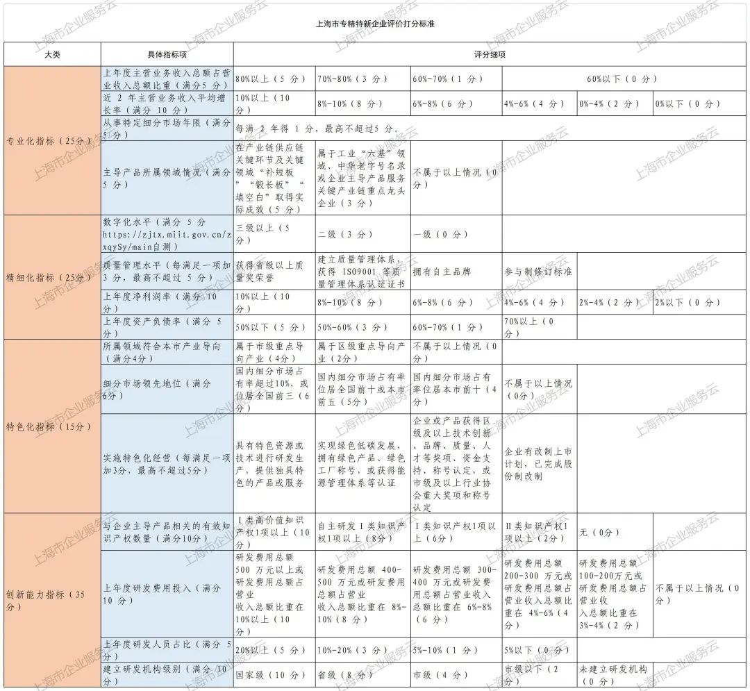 如果您的企业需要通过评价打分来认定为专精特新企业,可参照下图进行打分: