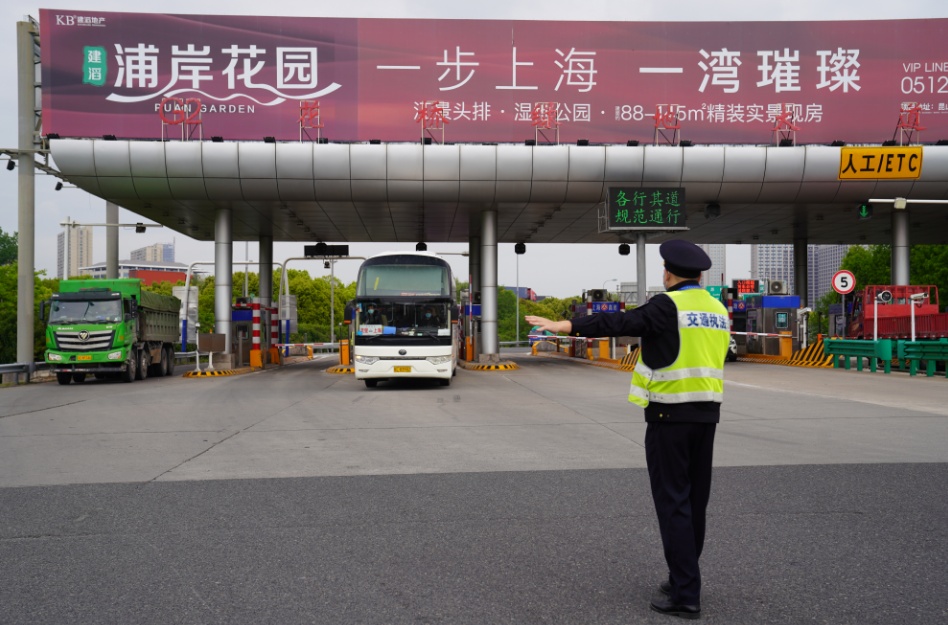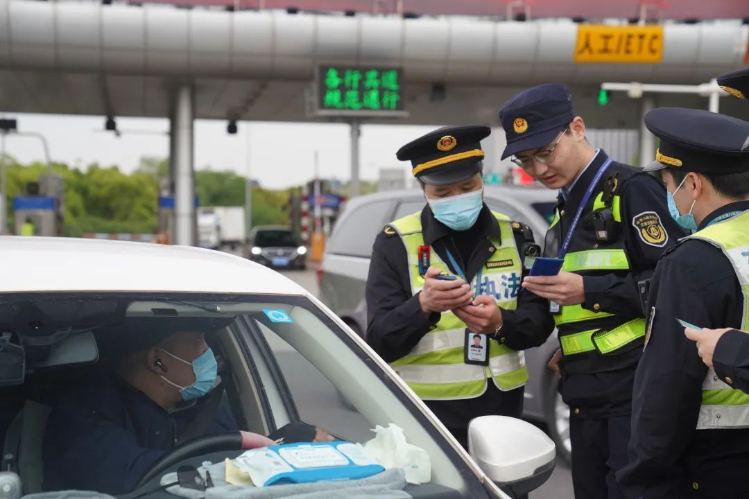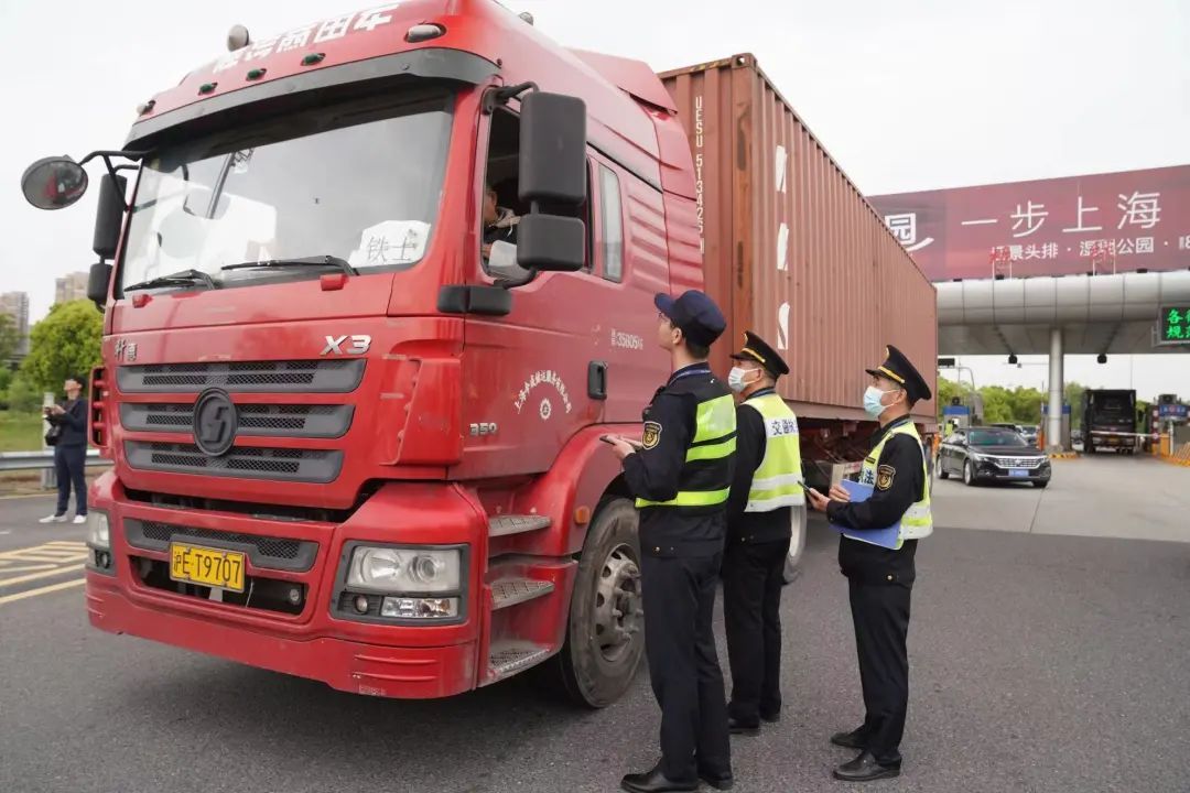4月25日,市交通委执法总队、嘉定区交通委执法大队、昆山交通执法大队以及G2高速交警在G2京沪高速绿地大道收费站开展联合执法。