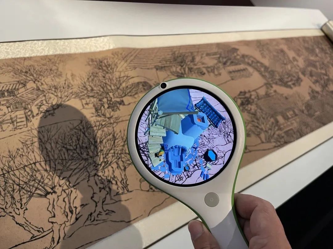 “哇!这个好神奇啊!”见到这幅《天工开物》,学生们都被深深吸引了。只要用这个AI放大镜,就能看到整个铸铁炼铜的过程,让孩子们大开眼界。