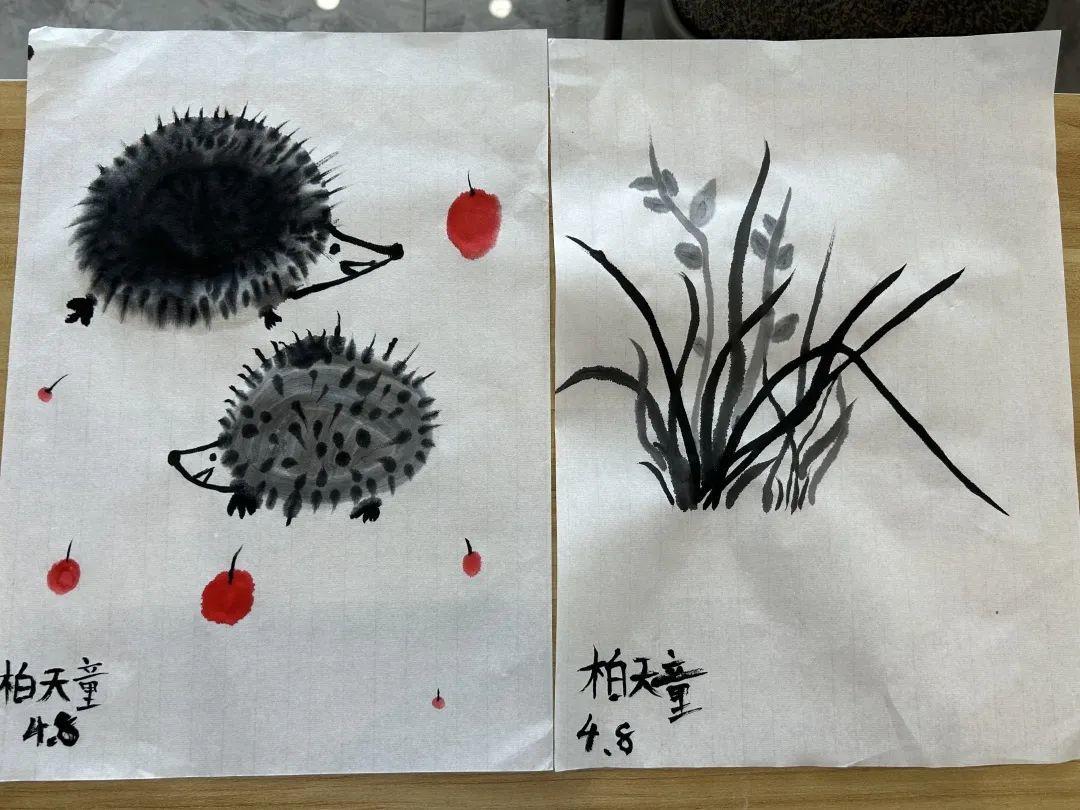 牡丹里青年志愿者带领青少年了解国画的起源以及如何执笔、如何利用水和墨勾画出浓墨重彩等,由浅至深地为青少年讲解国画的相关知识,并教他们绘画兰花以及小刺猬。