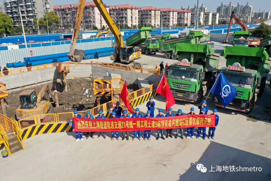 凌河路站基坑周边存在多个小区、别墅区、社区公园,西近杨高北路高架施工区、东邻22万伏高压线,内外部环境复杂,文明施工、安全管理难度高。同时,施工区间长、工期紧、变形控制要求高,对现场管理和质量控制带来更高要求。为此,21号线项目管理分公司要求现场遵循“策划先行、过程优化、样板引路”的建设理念,坚持“随挖随撑,分层开挖”的施工原则,精心组织、合理安排,优化工序衔接,严格控制基坑开挖暴露时间,在局部扩大端采用伺服支撑,采用电子屏实时显示承压水变化加强基坑降水及监测管理,多方合力将精细化管理落实到开挖全过程,确保开挖顺利完成。