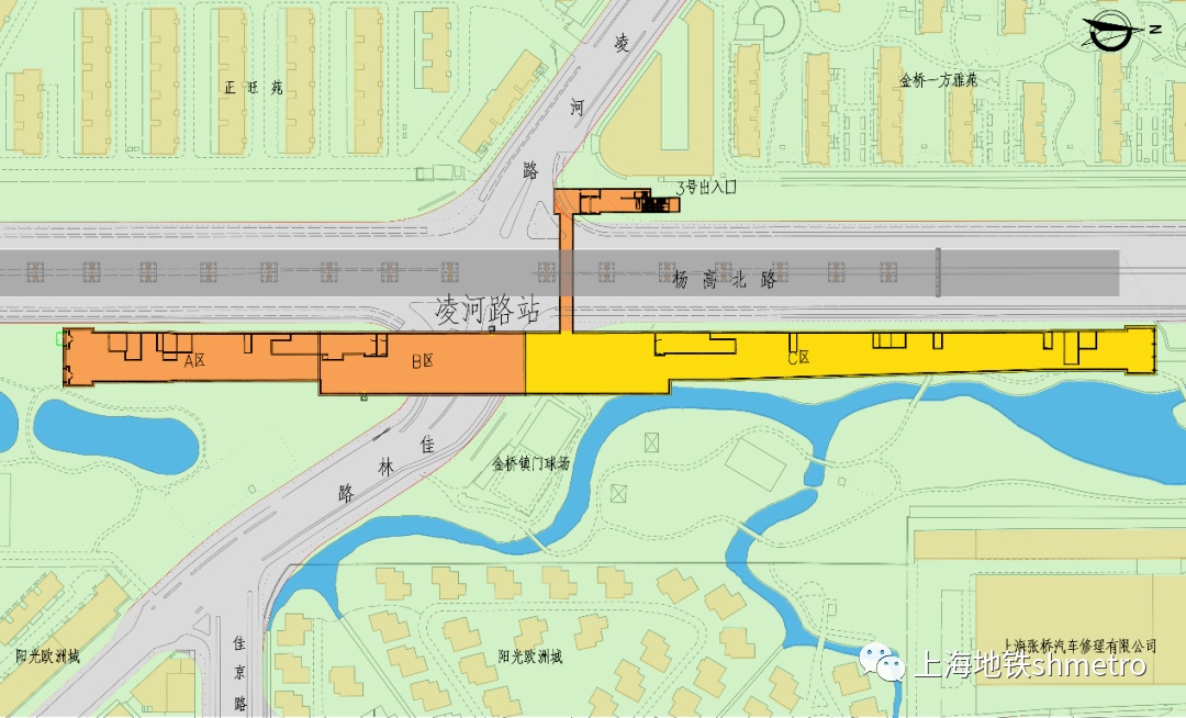 凌河路站位于凌河路和杨高北路交叉东侧,沿杨高北路东侧绿化带呈南北向布置,本站为地下二层一岛一侧车站。凌河路站分为A、B、C三个施工区,其中C区基坑长度约315米,开挖最深处约19米,采用明挖顺做法施工。