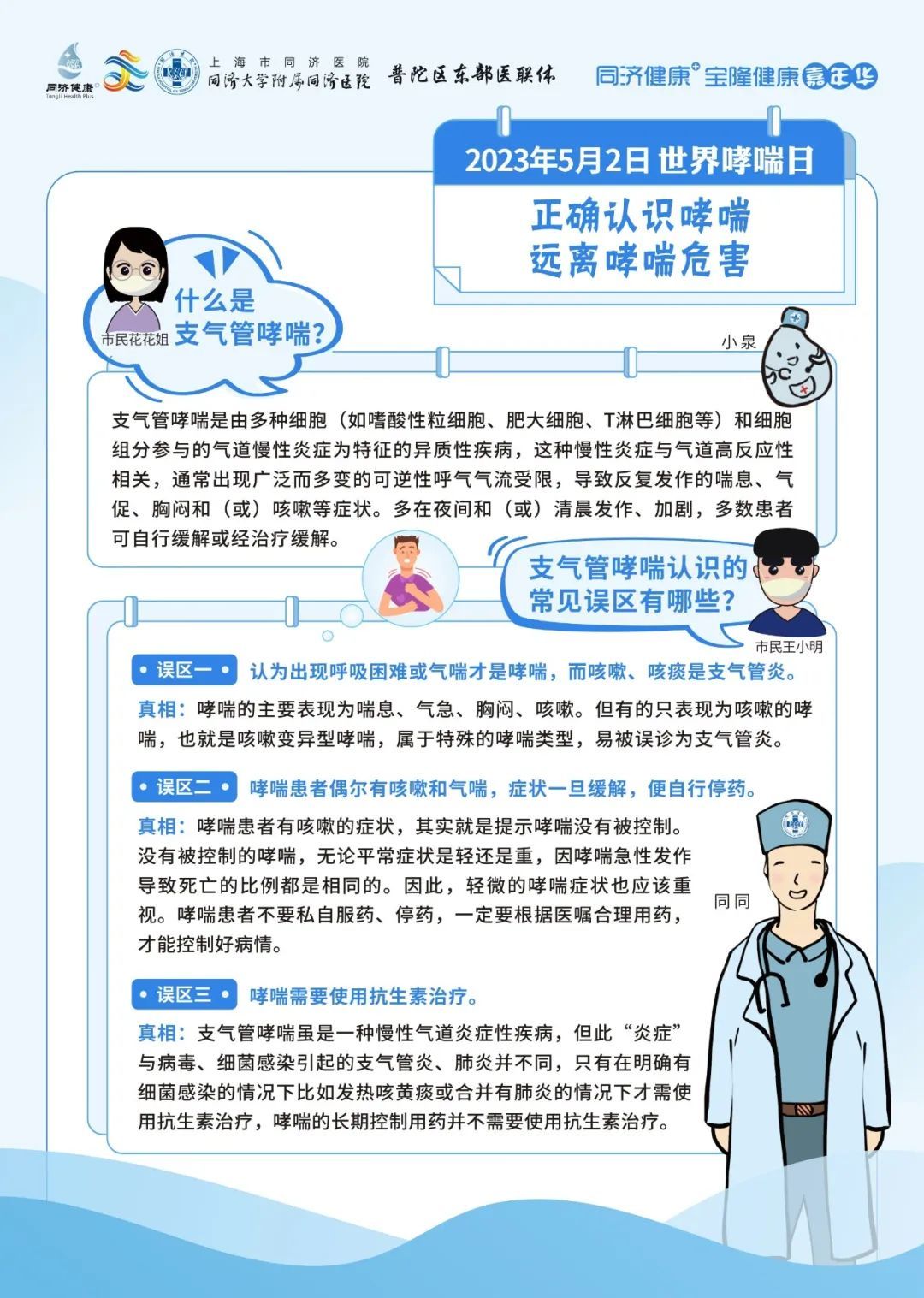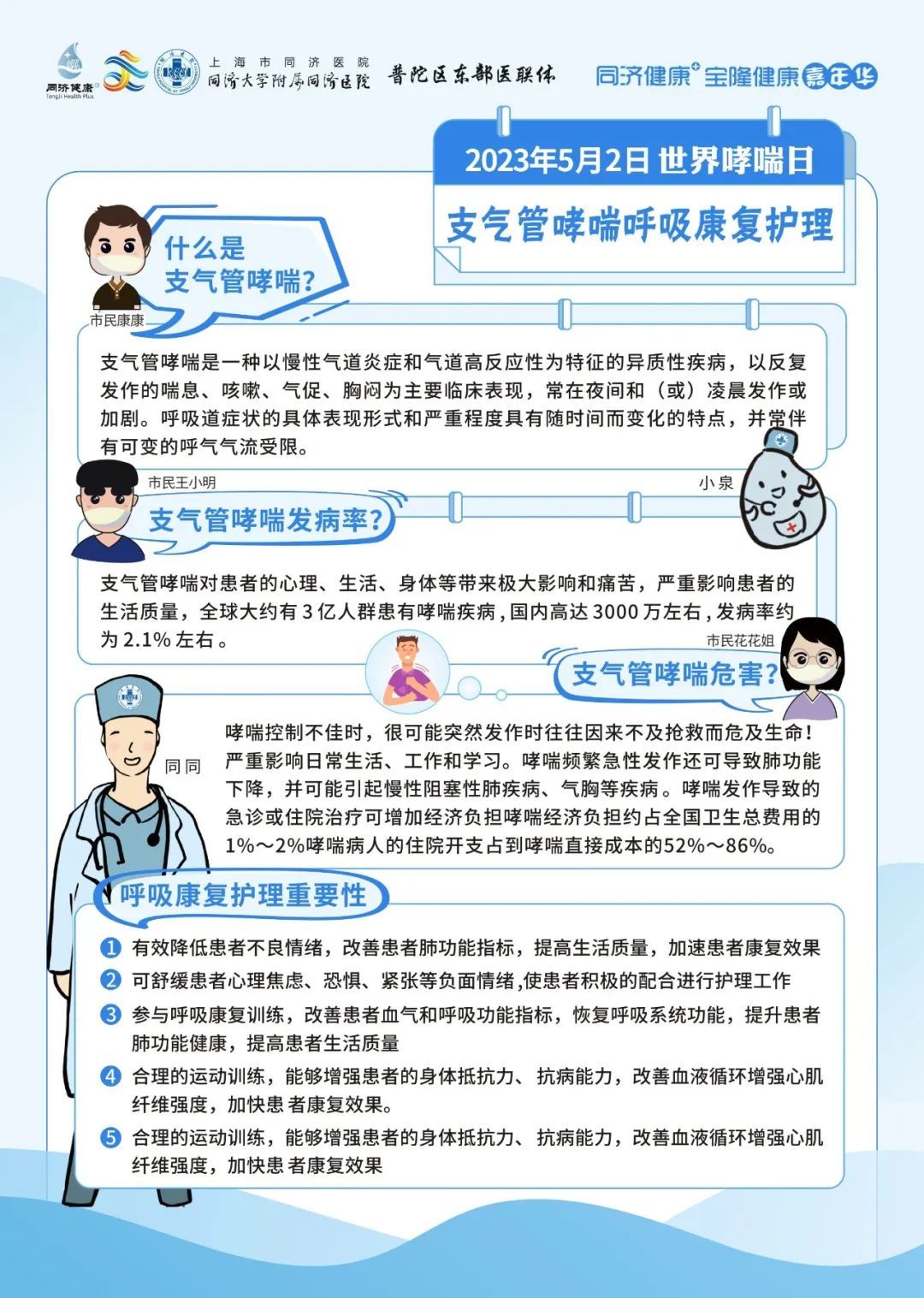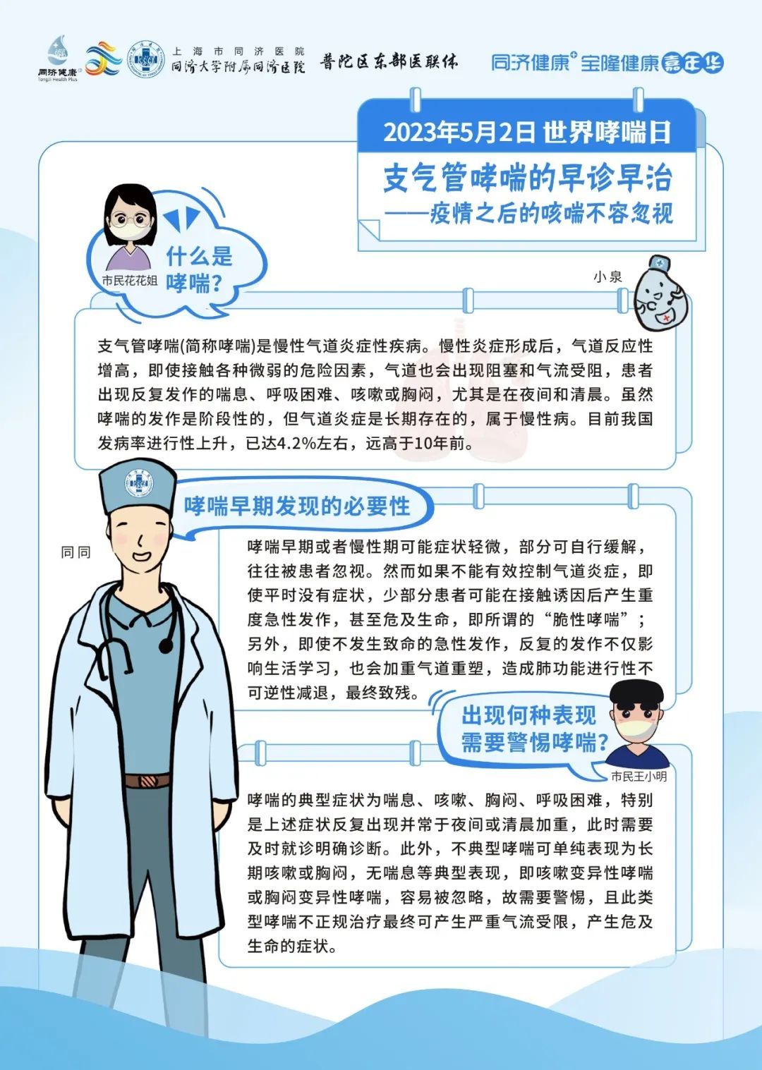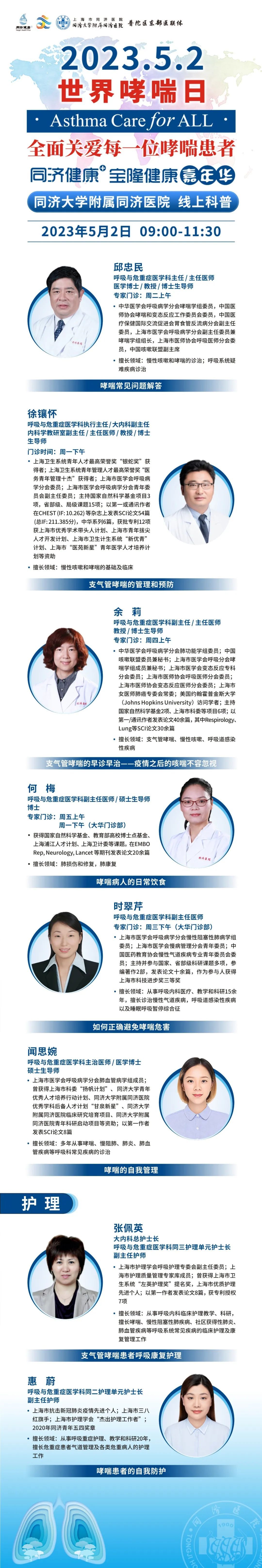 同济大学附属同济医院将于5月2日09:00-11:30,由呼吸与危重症医学科为大家带来哮喘防治的相关科普。