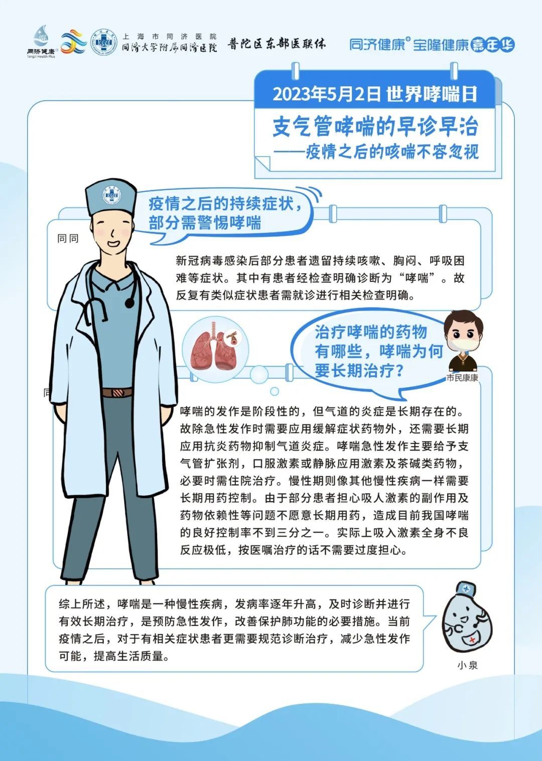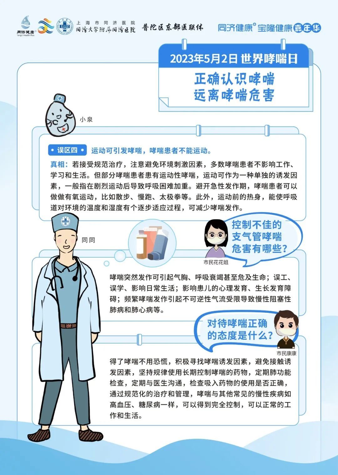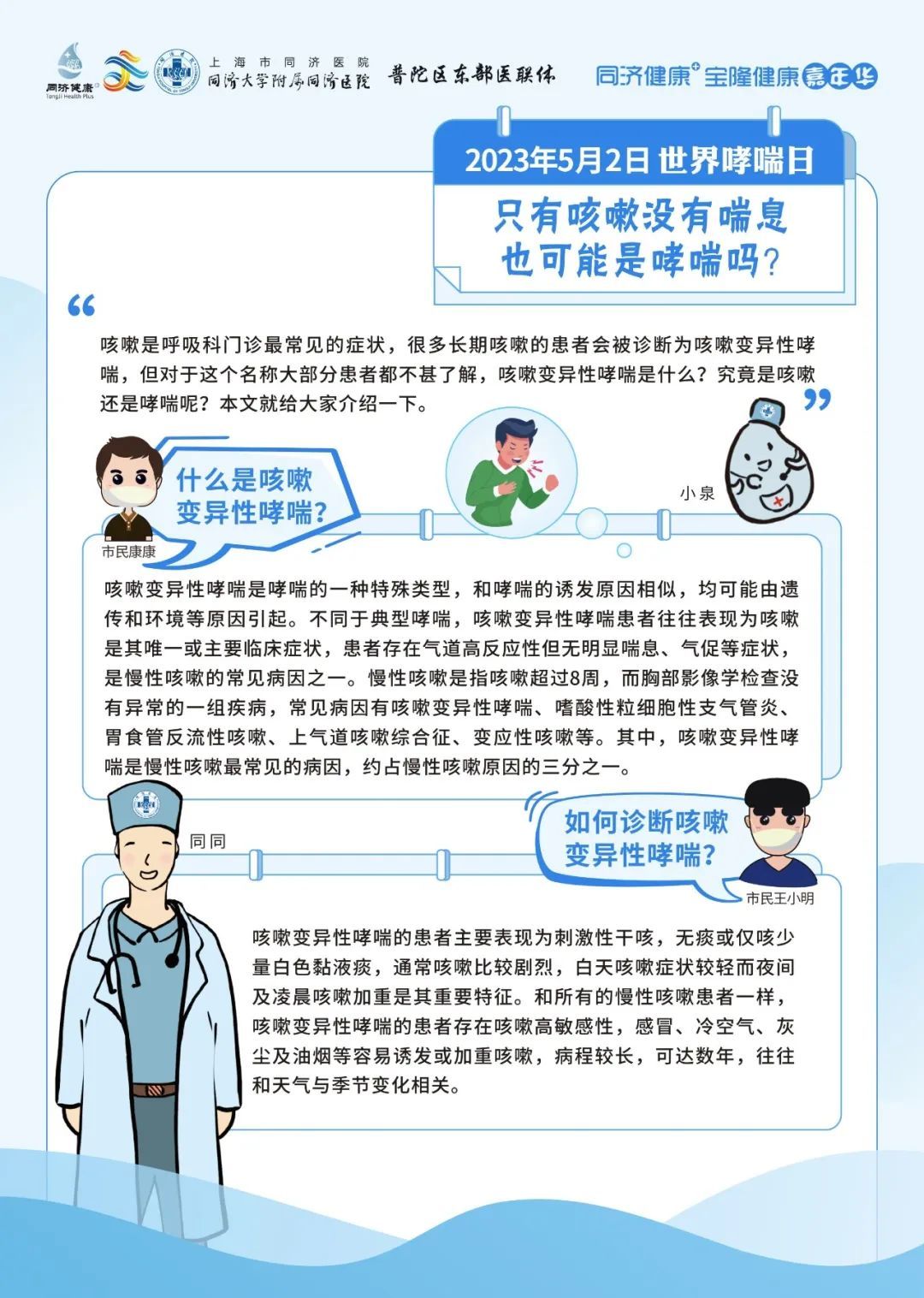 同济大学附属同济医院将于5月2日09:00-11:30,由呼吸与危重症医学科为大家带来哮喘防治的相关科普。