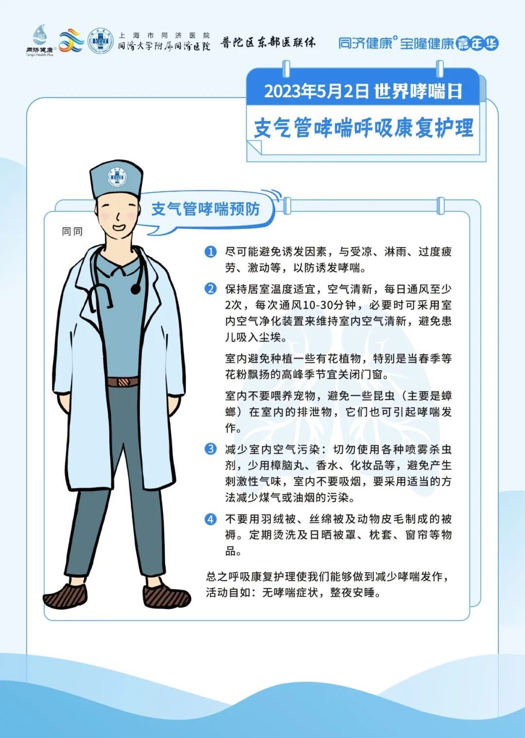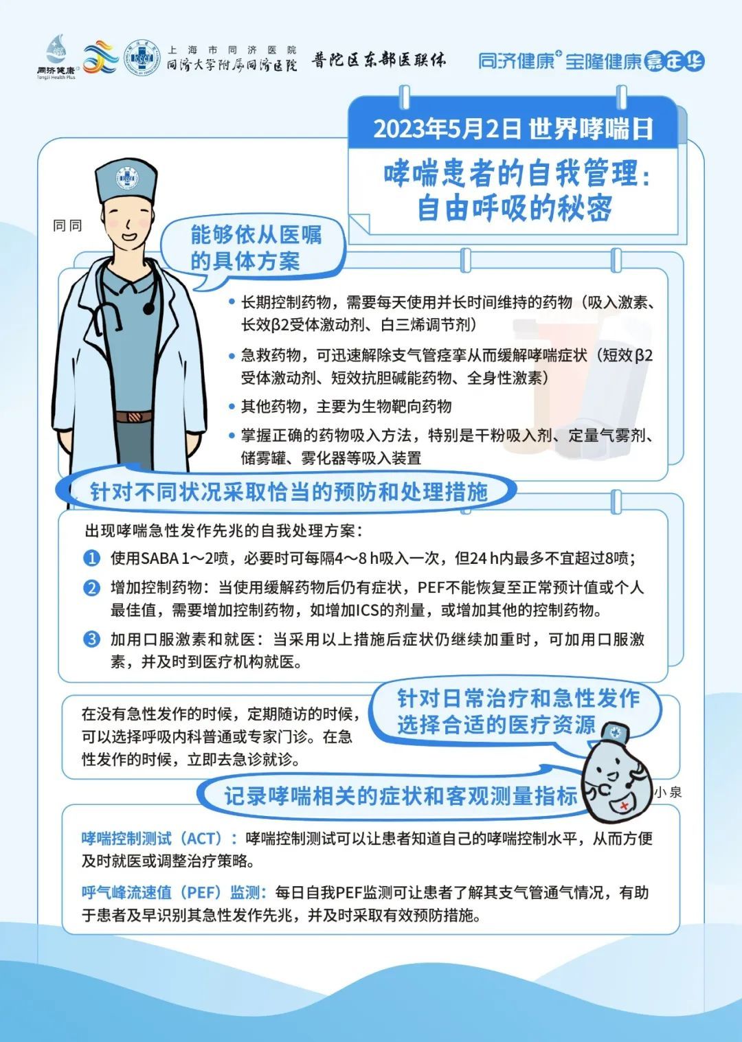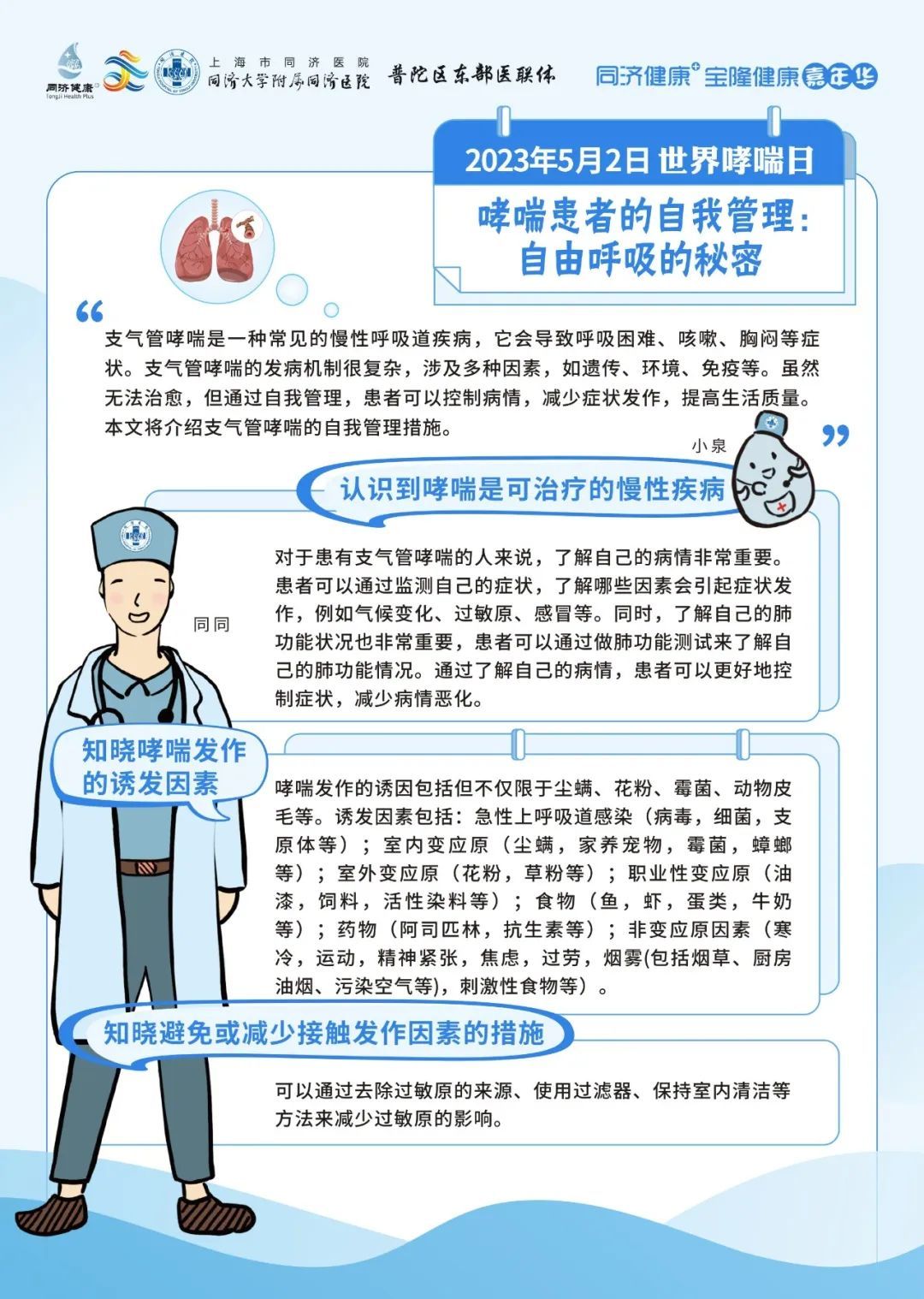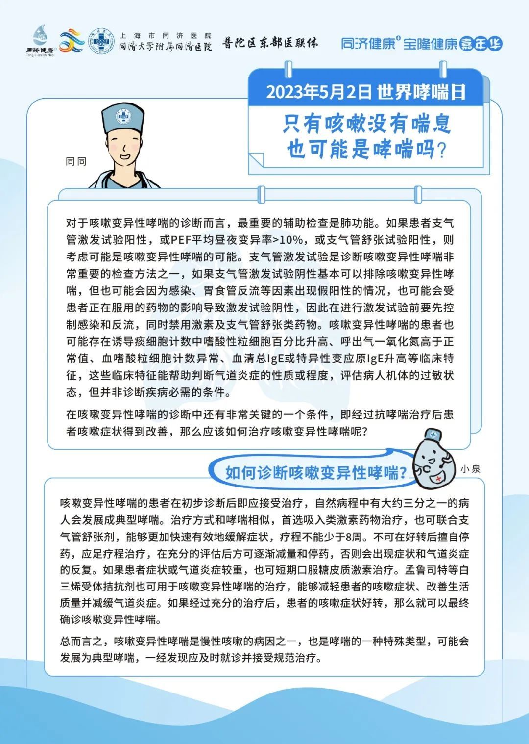 同济大学附属同济医院将于5月2日09:00-11:30,由呼吸与危重症医学科为大家带来哮喘防治的相关科普。