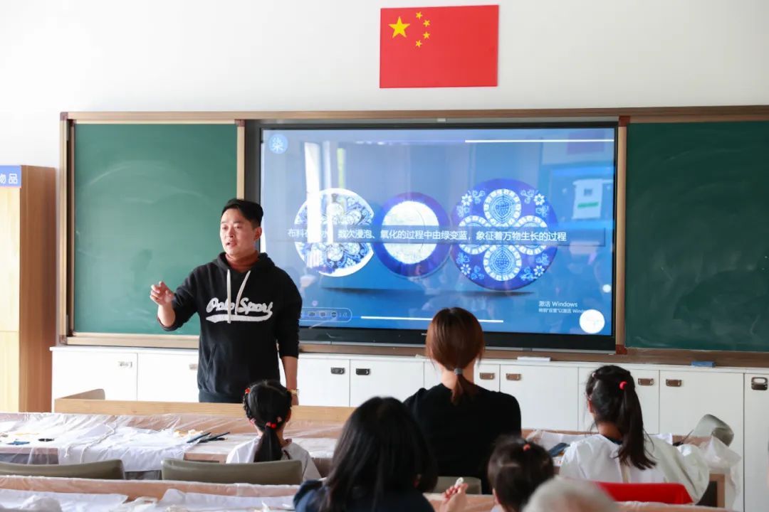 中山街道社区党群服务中心相关负责人介绍,扎染是民间传统的染色工艺,国家级非物质文化遗产之一,活动邀请家长和孩子们一起体验这项工艺,让他们在感受非遗魅力的同时,积极传承非遗文化。