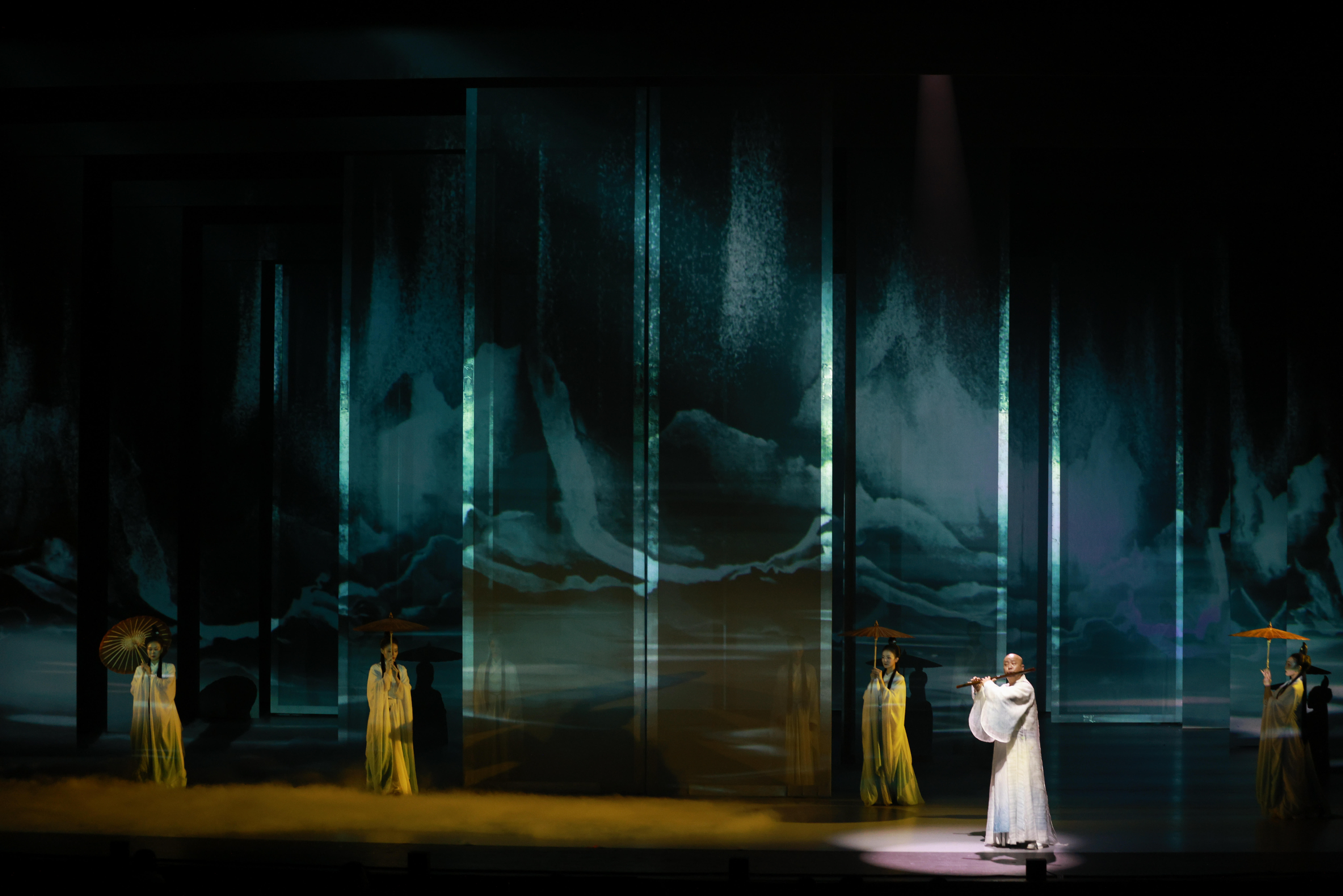 音乐总监孟可曾为《琅琊榜》《伪装者》等大热剧集影视原声作曲,“让民族音乐走向世界”是他始终坚持的理想。在他看来,不同于《只此青绿》,《江山竞秀》对音乐的要求更高。他认为只有做出有思想、有深度的音乐,才是能触达观众心灵的乐声。“借助音乐的独立语言,观众得以徜徉在‘乐中有画,画中有乐’的音画诗卷中,感受旷远的千年时空和丰盈的文化生命。”