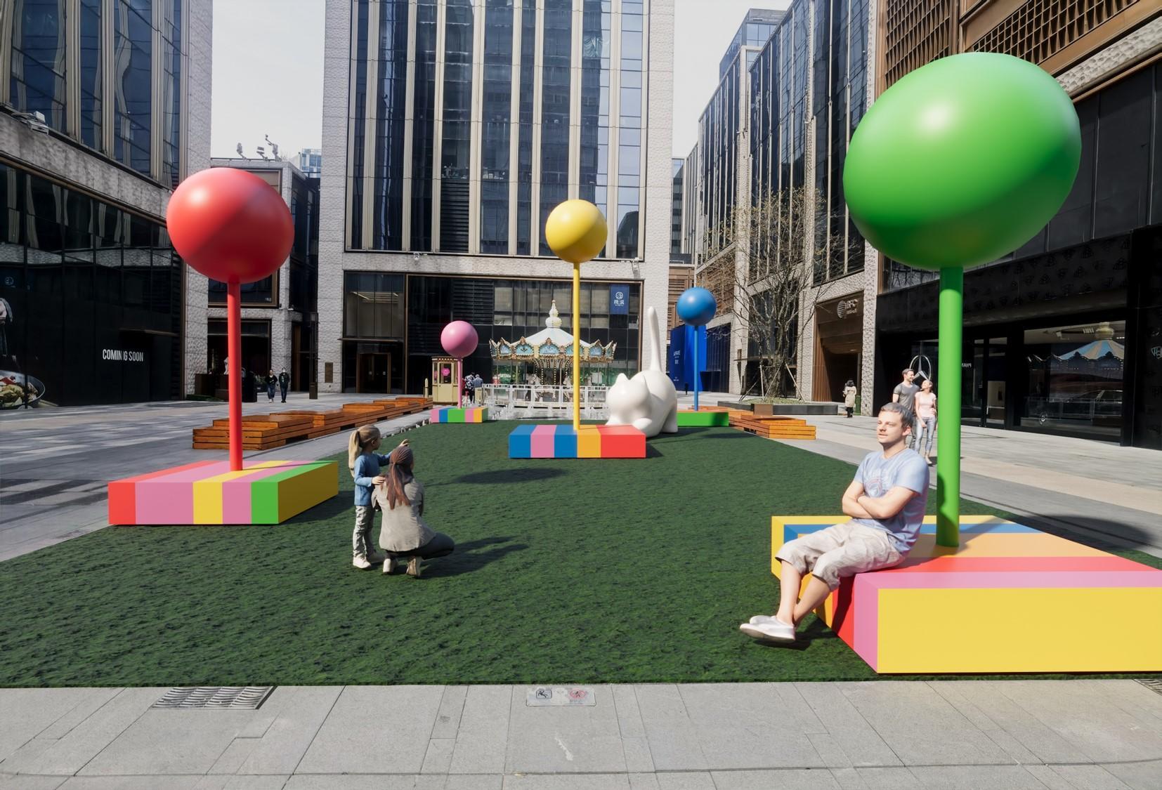除了“外滩猫街”,BFC广场的大型公共艺术作品《艺术家,不可见》和豫园中心广场的《乐在其中》也来自TANGO的创作,呈现软萌可爱的猫咪和五彩缤纷的逗猫棒形象,营造童话般的“猫主子”生活场景;而AR技术的加持则让这件艺术品更添互动乐趣——观赏者可以“看、触、拍”等多种方式参与到与作品的互动中去,以充满未来科技感的方式感受艺术魅力。