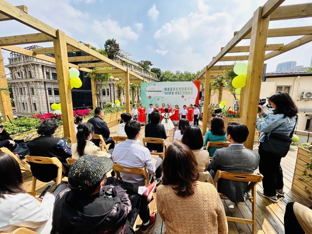 满目芬芳的露台花园,成为孩子们和天平居民的闪亮舞台。充满童趣的歌唱、上海闲话的绕口令表演、自创自演的快板《天平邻里欢乐颂》,为这座老房子环绕的新生活空间注入满满活力与生机,随着启用揭幕,对美好生活的体验和期盼也在这一刻开启。